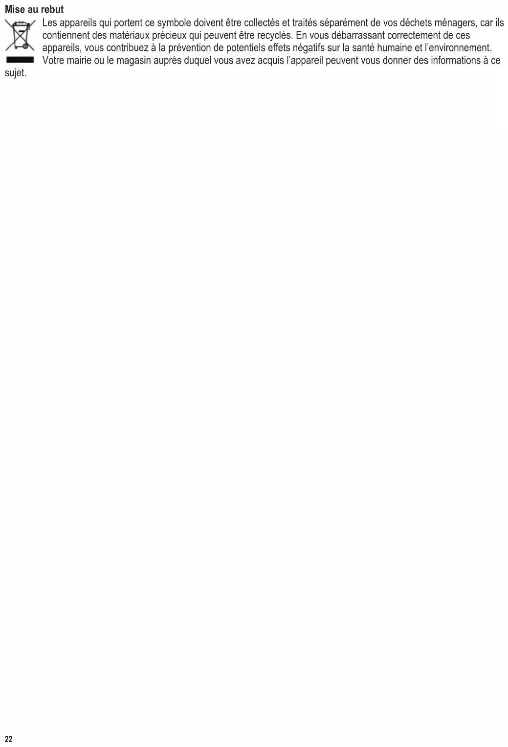 Tijdklok ∙ De tijdklok heeft twee schalen. De buitenste schaal is voor het ontdooien naar gelang van gewicht in kg. De binnenste schaal is gebruikt voor het instellen van kook of opwarmtijden. ∙ Met gebruik van de tijdklok kan men een gebruikstijd van 35 minuten kiezen. ∙ Wanneer men een kooktijd kiest voor minder dan 5 minuten (of voor een hoeveelheid minder dan 350 gr) moet men de knop eerst geheel doordraaien en dan terugdraaien naar de gekozen tijd. ∙ Wanneer de tijdklok is ingesteld zal het apparaat starten zodra de deur gesloten is. ∙ Het apparaat kan altijd uitgeschakeld worden door de tijdklok op “0” te zetten. ∙ Voor ontdooien, zet de power keuze schakelaar naar ‘Ontdooien’. Gebruik de buitenste schaal op de tijdklok om het gewicht van het te ontdooien voedsel in the stellen. De verstelbare waardes zijn ingeschat, en kunnen verschillen van de benodigde tijd. Wanneer het ontdooien niet voldaan is nadat de ingestelde tijd verlopen is, herhaal dan het proces met een kortere tijd instelling.28 142 x 208 mm Gebruiksvolgorde ∙ Plaats het voedsel wat opgewarmd moet worden in een geschikte container. Plaats de container op de draaiplaat van de oven. ∙ Wanneer voedsel wordt gekookt met microwaves moet het afgedekt worden om uitdrogen te voorkomen. Glazen of plastic deksels geschikt voor gebruik met microwave ovens zijn beschikbaar van keukengerei winkels. ∙ Gebruik de power keuzeknop om de gewenste level te kiezen. ∙ Sluit de deur en zet de gewenste kooktijd met de tijdklok. De draaiplaat begint te draaien; tijdens operatie zal de binnenverlichting aanblijven. ∙ Wanneer men de deur opent tijdens de operatie (b.v. om voedsel te roeren), zullen de kook en de tijdklok funktie automatisch onderbroken worden en weer opstarten wanneer de deur weer gesloten wordt. ∙ Wanneer de voorgeprogrammeerde tijd verlopen is zal men een geluidsignaal horen en de binnenverlichting zal uitgaan. De verlichting gaat ook uit wanneer de deur geopend wordt. ∙ Open de deur en verwijder de container met voedsel. ∙ Om te zorgen dat de warmte gelijkmatig over het voedsel verdeelt wordt moet men de container enkele minuten laten staan. Onderhoud en schoonmaken ∙ Voordat men het apparaat schoonmaakt moet men zorgen dat de stekker is verwijderd uit het stopcontact en het apparaat volledig is afgekoeld. ∙ Maak het apparaat niet schoon met water. Zorg ervoor dat geen water - hoe klein de hoeveelheid ook is – in de ventilatie gaten komt aan de binnenkant of buitenkant van het apparaat. Gebruik geen stoomapparaten voor het schoonmaken. ∙ Het hele apparaat mag schoongemaakt worden met een vochtige pluisvrije doek en een zachte huishoudzeep. Veeg goed droog hierna. ∙ Gebruik geen schurende of bijtende schoonmaakmiddelen. Spuitbussen beschikbaar voor commercieel gebruik die speciaal ontworpen zijn voor het schoonmaken van gewone ovens mogen niet gebruikt worden. ∙ De binnenkant moet schoongemaakt worden na ieder gebruik. Alle etensresten moeten verwijderd worden. ∙ De binnenkant van de deur, het deurframe, de rolring/aandrijfunit en het geleider spoor onder de glazen draaiplaat moeten altijd schoongehouden worden. ∙ De glazen draaiplaat en rolring/aandrijfunit mogen schoongemaakt worden met warm water en zeep. Aanvullende informatie Technische specicaties Buitenmaten: 305 mm (H) 510 mm (W) 430 mm (D) Binnenmaten: ∙ glazen draaiplaat: Ø 315 mm ∙ ruimte boven de glazen draaiplaat: 210 mm Unit gewicht: 14.4 kg Gebruiks voltage: 230 V~50 Hz Stroomgebruik: 1450 W Magnetron output 150 W - 900 W Afval weggooien Instrumenten gemerkt met dit symbool moeten apart weggegooit worden van het huishouidelijke afval, daar deze waardevolle materialen bevatten welke men kan recyclen. Juist wegdoen zal het milieu en de menselijke gezondheid beschermen. De plaatselijke autoriteit of handelaar kan daar informatie over geven.29 142 x 208 mm Microondas Estimado Cliente, Antes de utilizar el horno microondas, le recomendamos que lea detenidamente las siguientes instrucciones y que conserve este manual de instrucciones como referencia en el futuro. El aparato sólo debe ser usado por personas que se han familiarizado con estas instrucciones. Elementos componentes