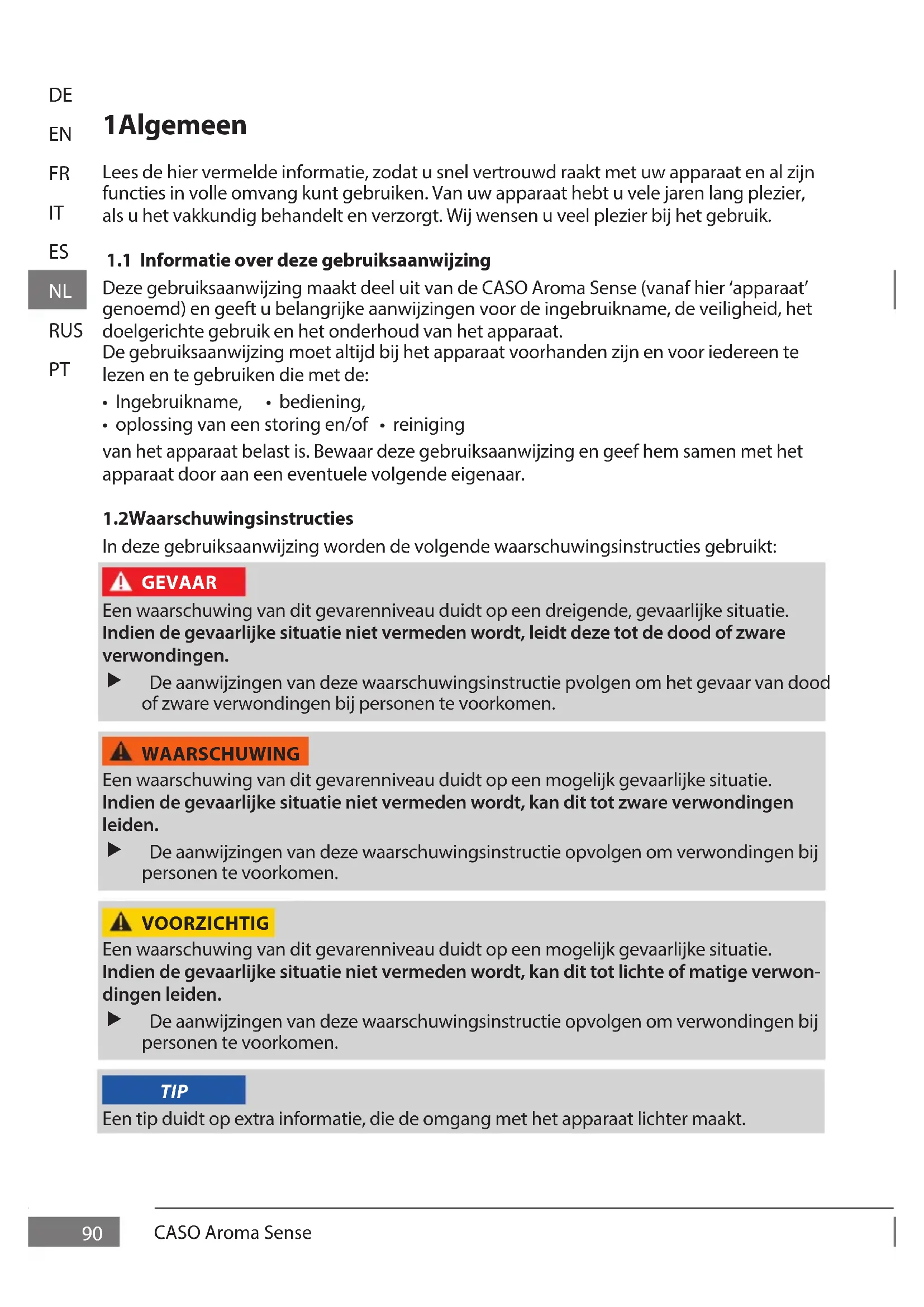 1.2 Waarschuwingsinstructies