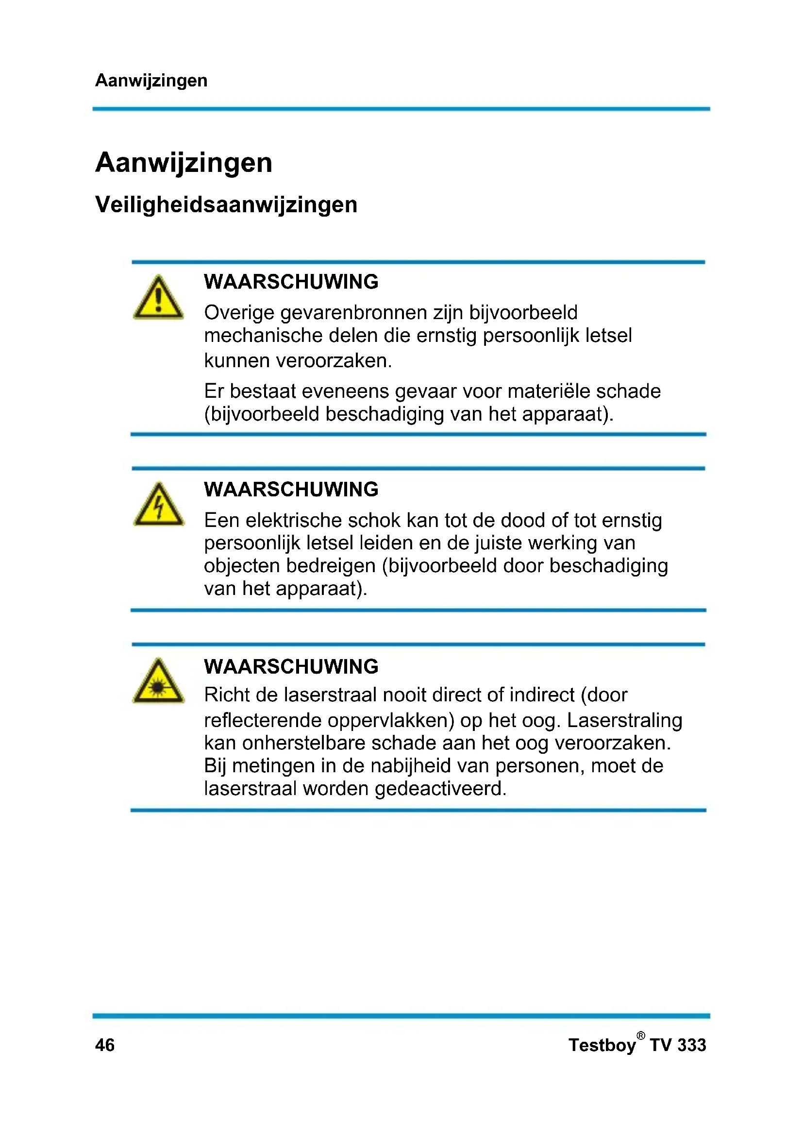 TV 333 Aanwijzingen Veiligheidsaanwijzingen