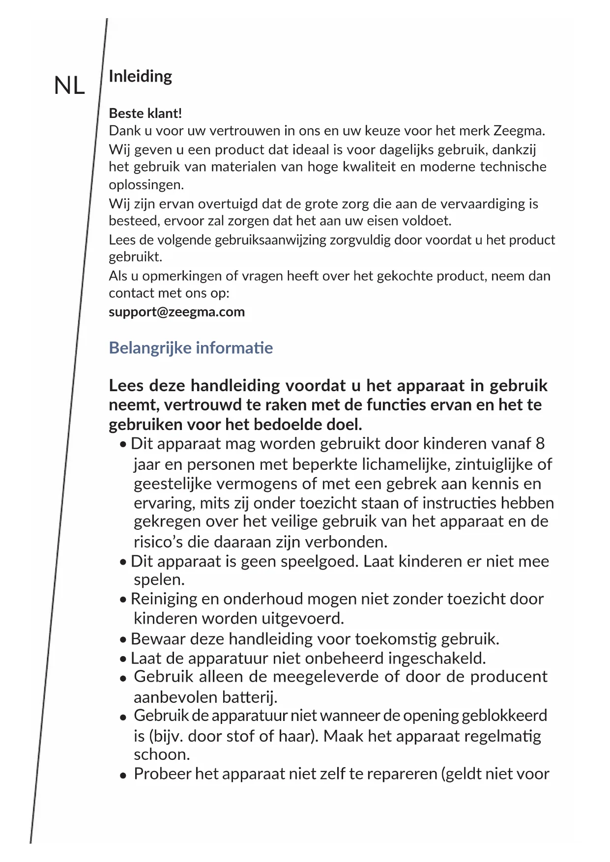 GEBRUIKSAANWIJZING Zonder Klaar Zeegma