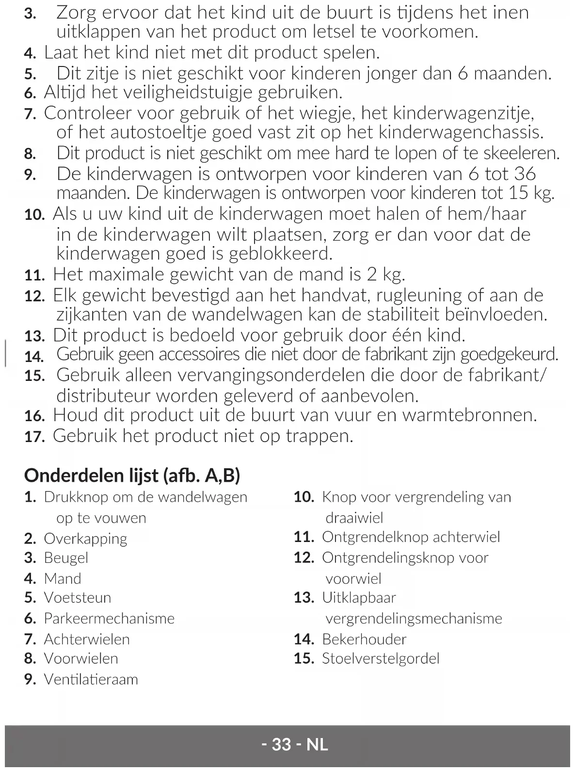 3. Onderdelen van de kinderwagen moeten regelmag worden gecontroleerd