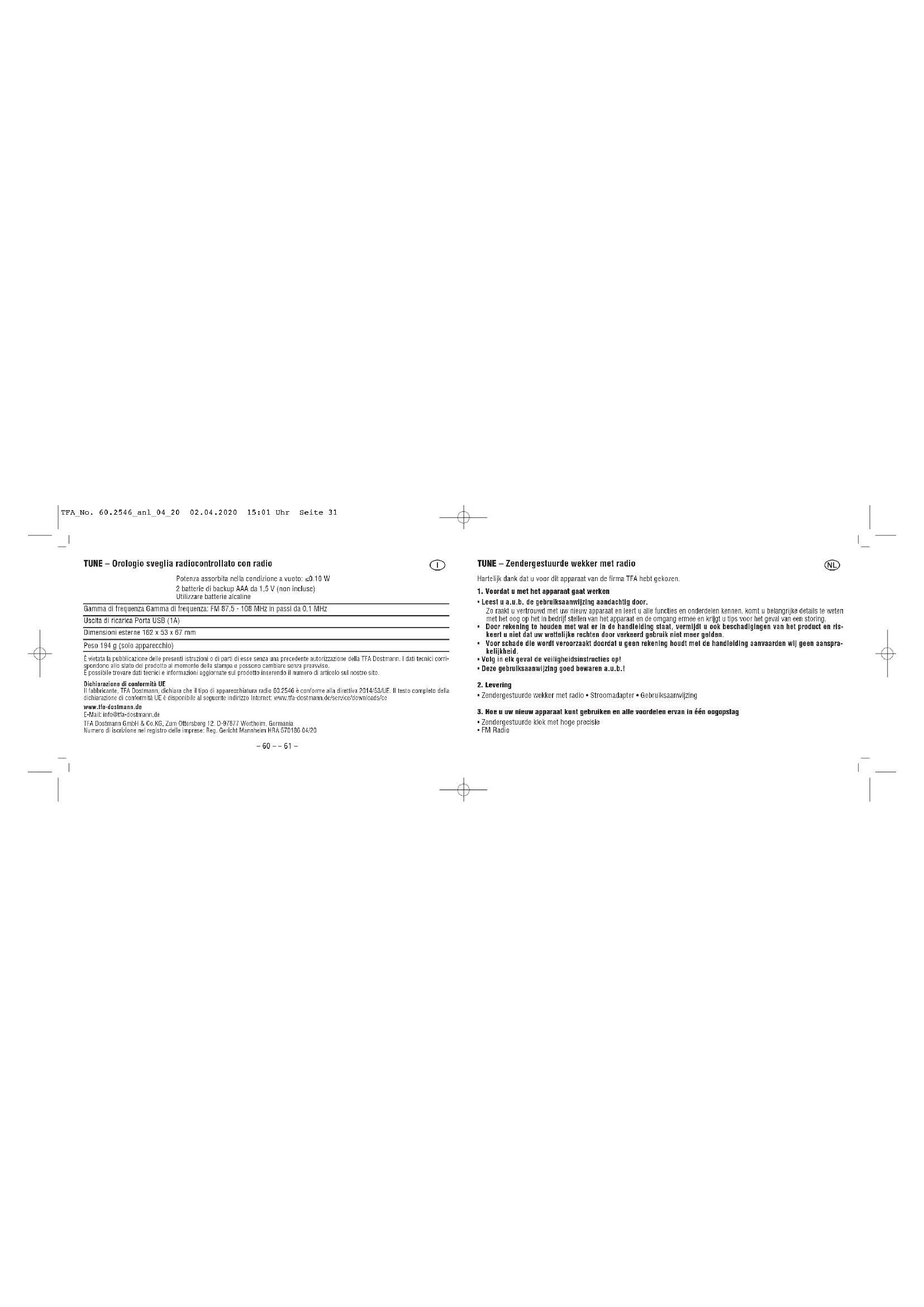- Het apparaat verlaat automatisch de instelmodus, als er langer dan 60 seconden geen toets wordt ingedrukt. TFA_No. 60.2546_anl_04_20 02.04.2020 15:01 Uhr Seite 34– 68 – – 69 –