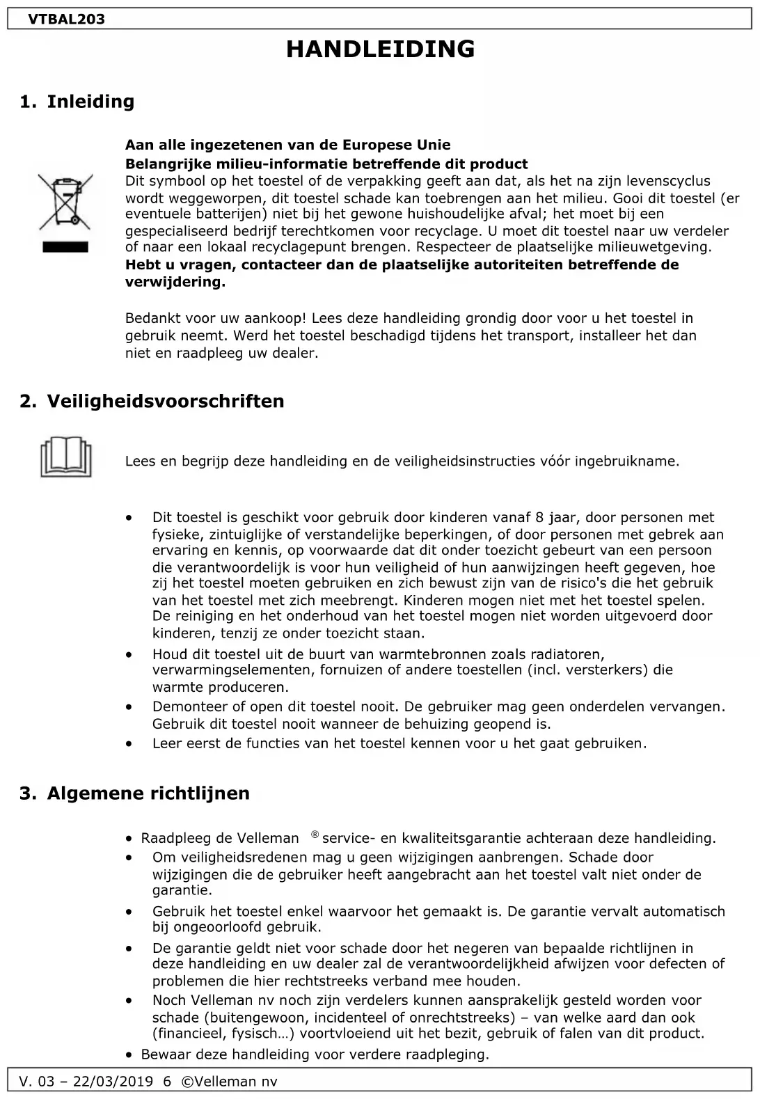 V. 03 – 22/03/2019 8 ©Velleman nv