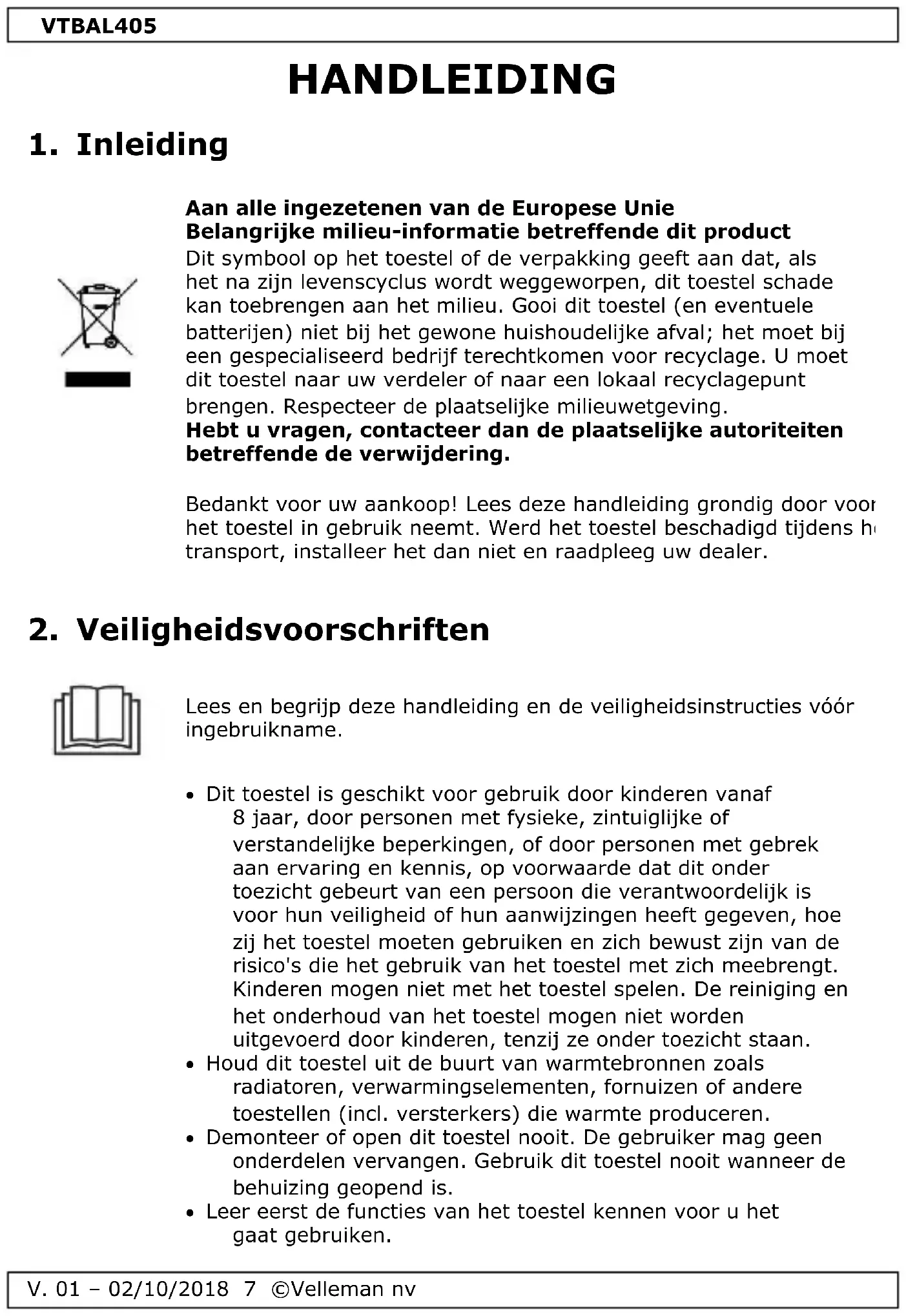 V. 01 – 02/10/2018 8 ©Velleman nv