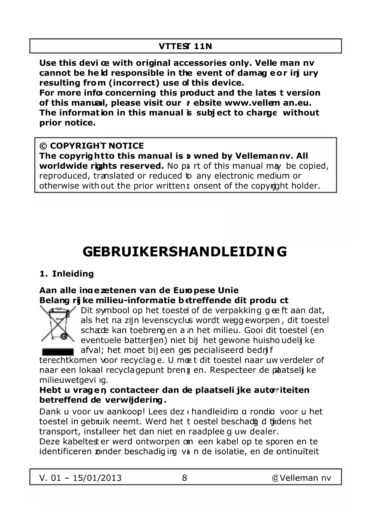 GEBRUIKSAANWIJZING VTTEST11N VELLEMAN