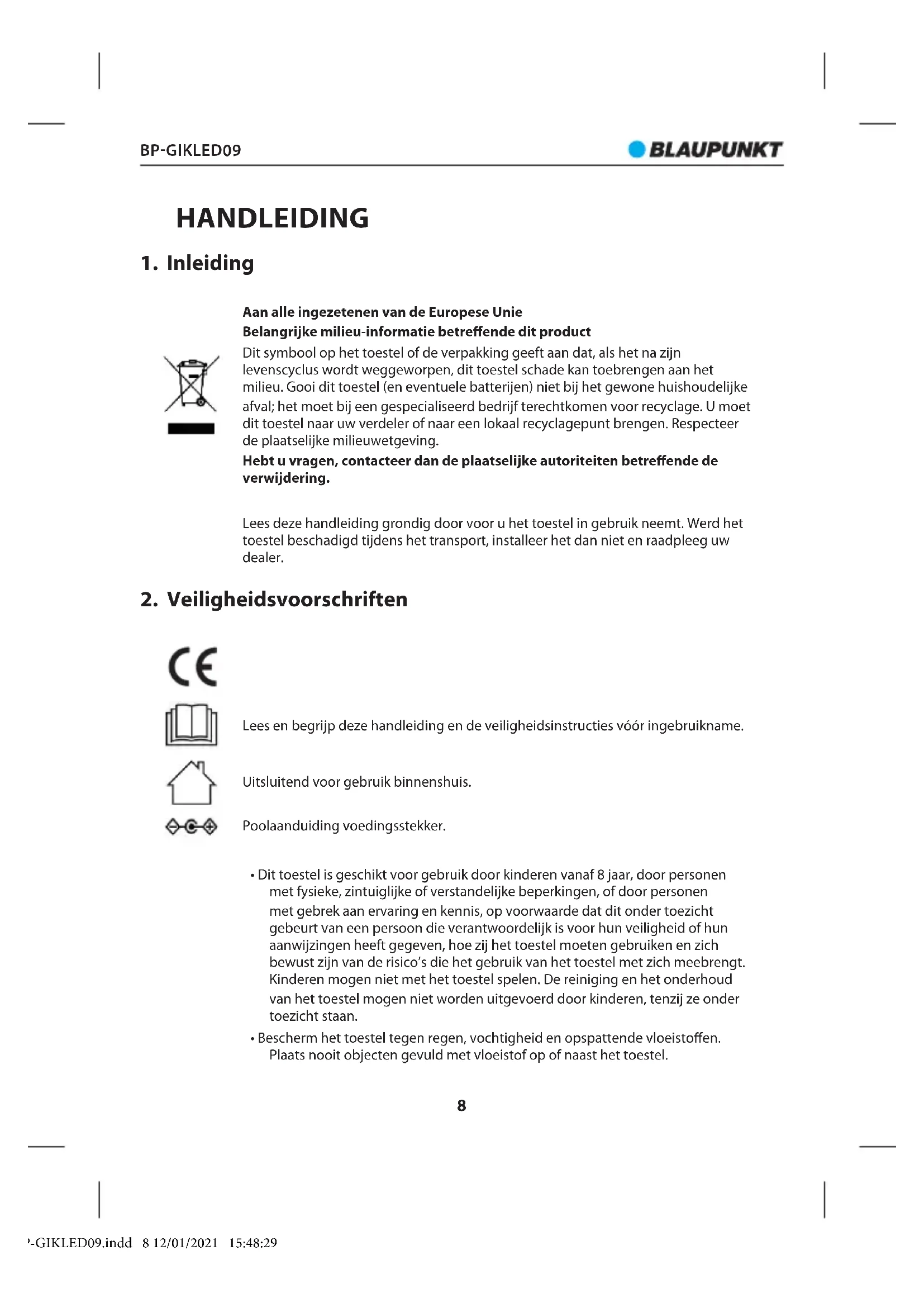 - Bewaar deze handleiding voor verdere raadpleging. BP-GIKLED09.indd 10 12/01/2021 15:48:30BP-GIKLED09