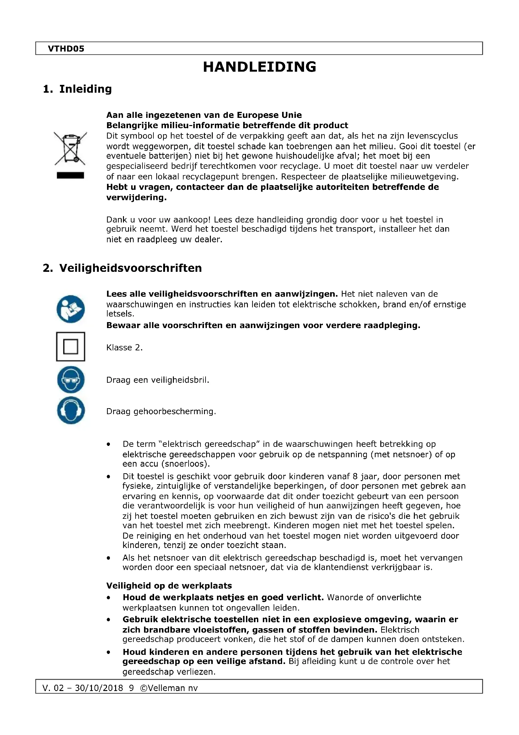 Vind de handleiding van het apparaat gratis VTHD05 VELLEMAN in PDF-formaat.