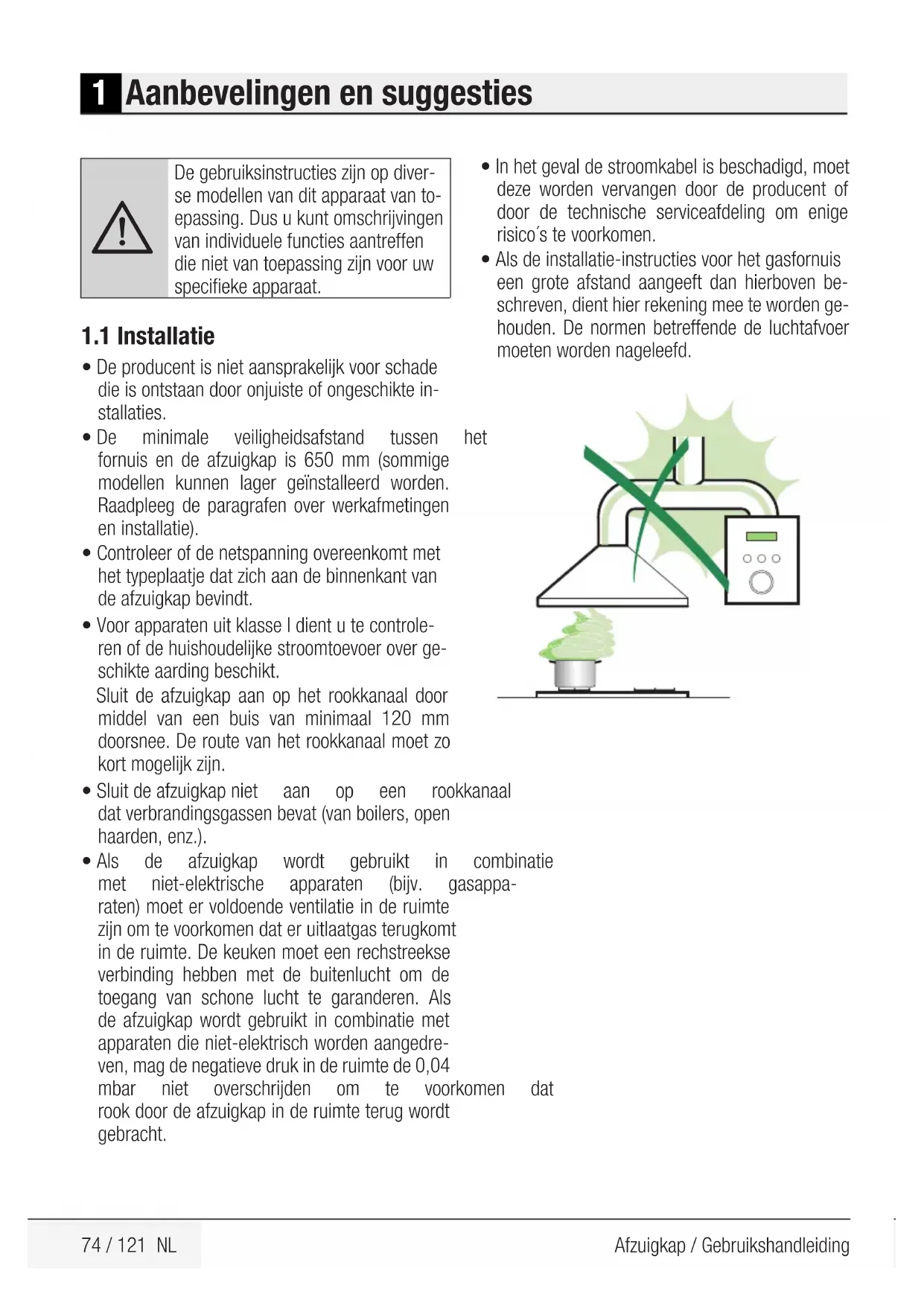 INHOUDSOPGAVE74 / 121 NL Afzuigkap / Gebruikshandleiding 1 Aanbevelingen en suggesties