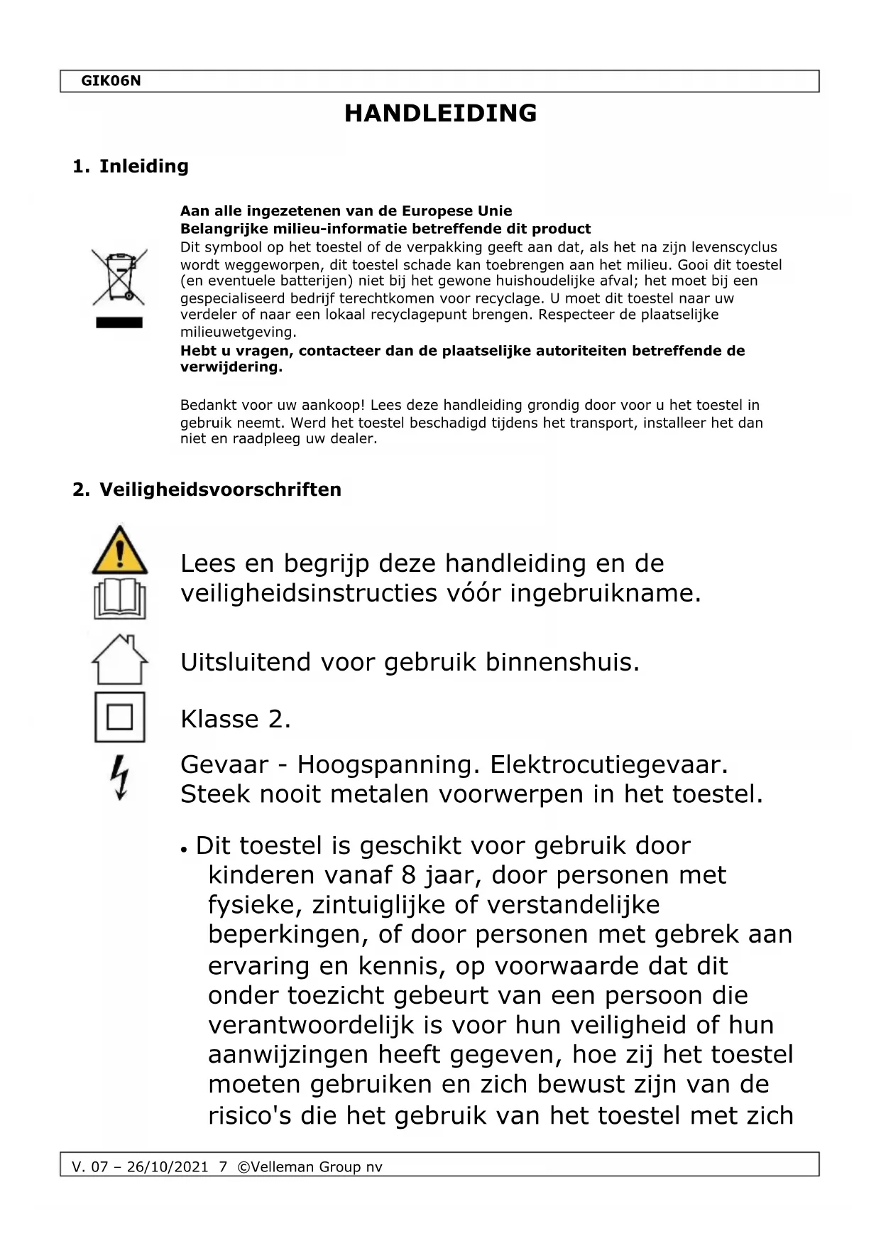 V. 07 – 26/10/2021 8 ©Velleman Group nv