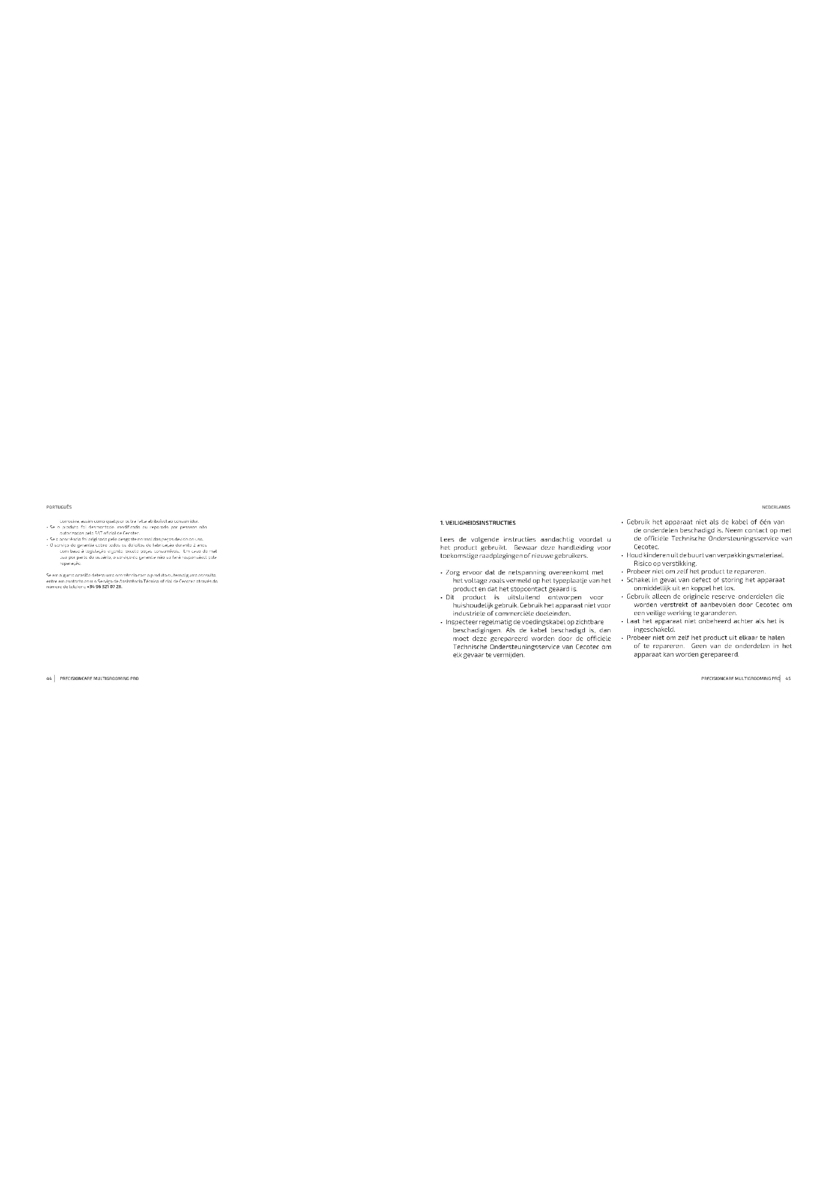 - Probeer niet om zelf het product uit elkaar te halen of te repareren. Geen van de onderdelen in het apparaat kan worden gerepareerd.46 47 NEDERLANDS NEDERLANDS