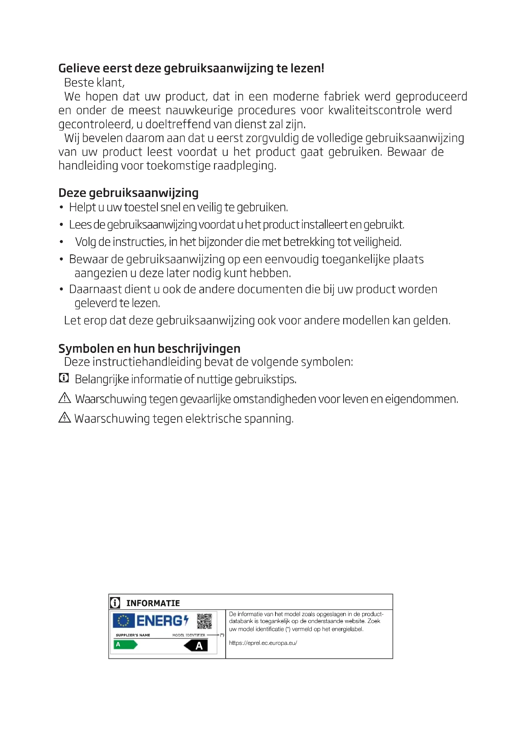 - Bewaar de gebruiksaanwijzing op een eenvoudig toegankelijke plaats aangezien u deze later nodig kunt hebben.