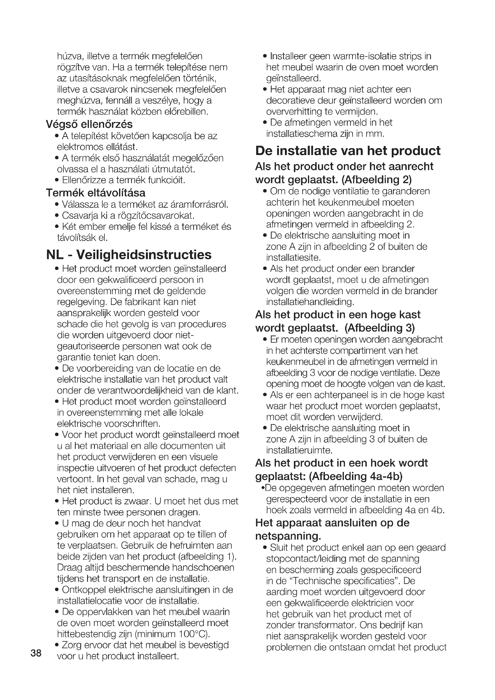 - Het apparaat mag niet achter een decoratieve deur geïnstalleerd worden om oververhitting te vermijden.
