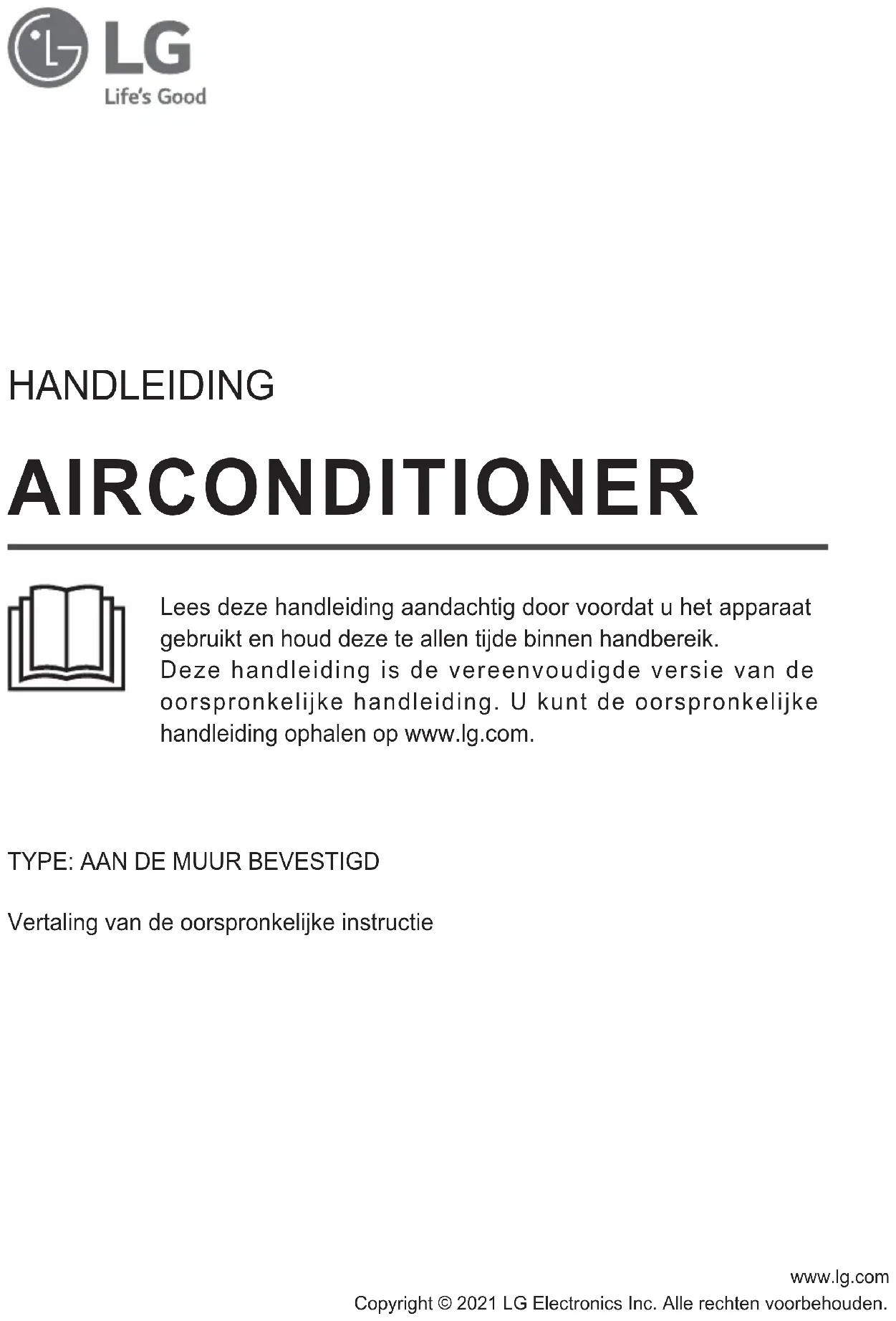 - Vertaling van de oorspronkelijke instructie Lees deze handleiding aandachtig door voordat u het apparaat gebruikt en houd deze te allen tijde binnen handbereik. Deze handleiding is de vereenvoudigde versie van de oorspronkelijke handleiding. U kunt de oorspronkelijke handleiding ophalen op www.lg.com.INHOUDSOPGAVE Deze handleiding kan afbeeldingen of inhoud bevatten die verschillen van het aangeschafte model. Deze handleiding is onderhevig aan herziening door de fabrikant. GEBRUIK p. 3