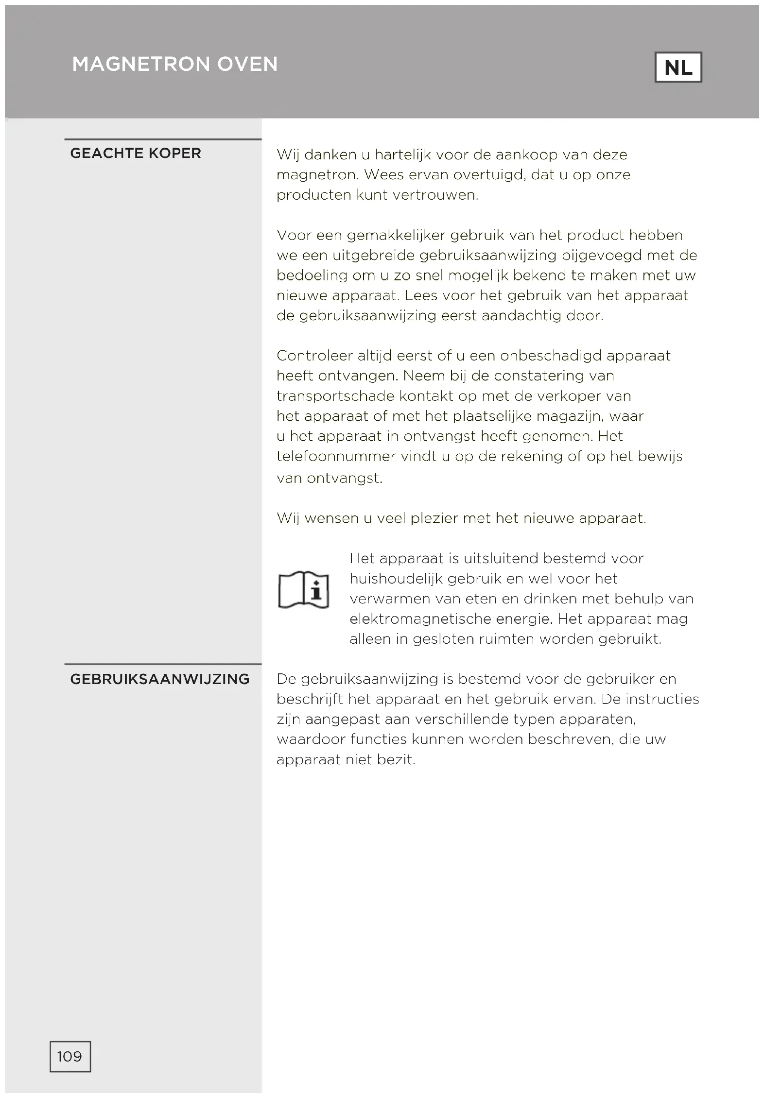 GEBRUIKSAANWIJZING MAGNETRON OVEN