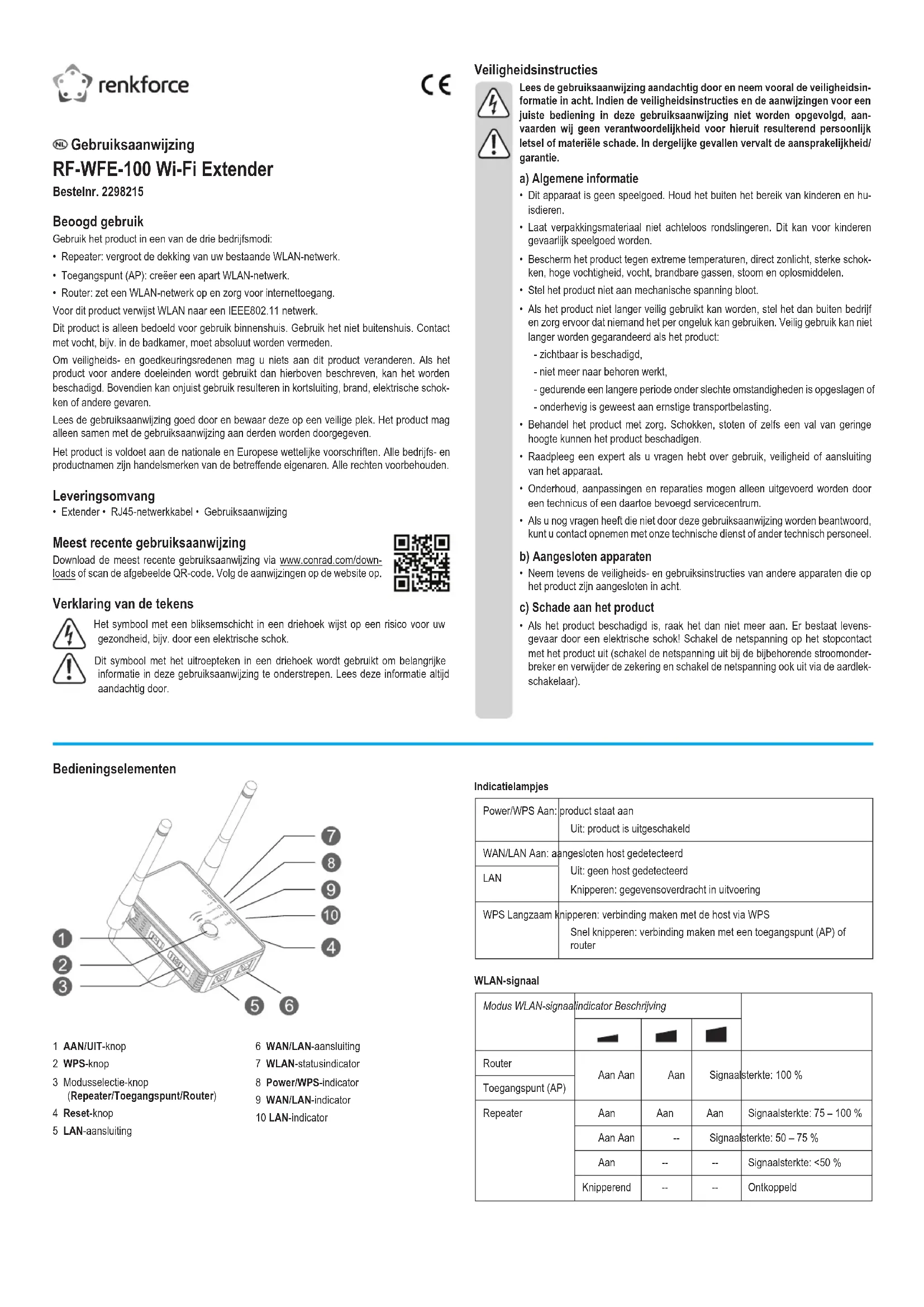 RFWFE100 - Wifi repeater Renkforce - Gratis gebruiksaanwijzing en handleiding