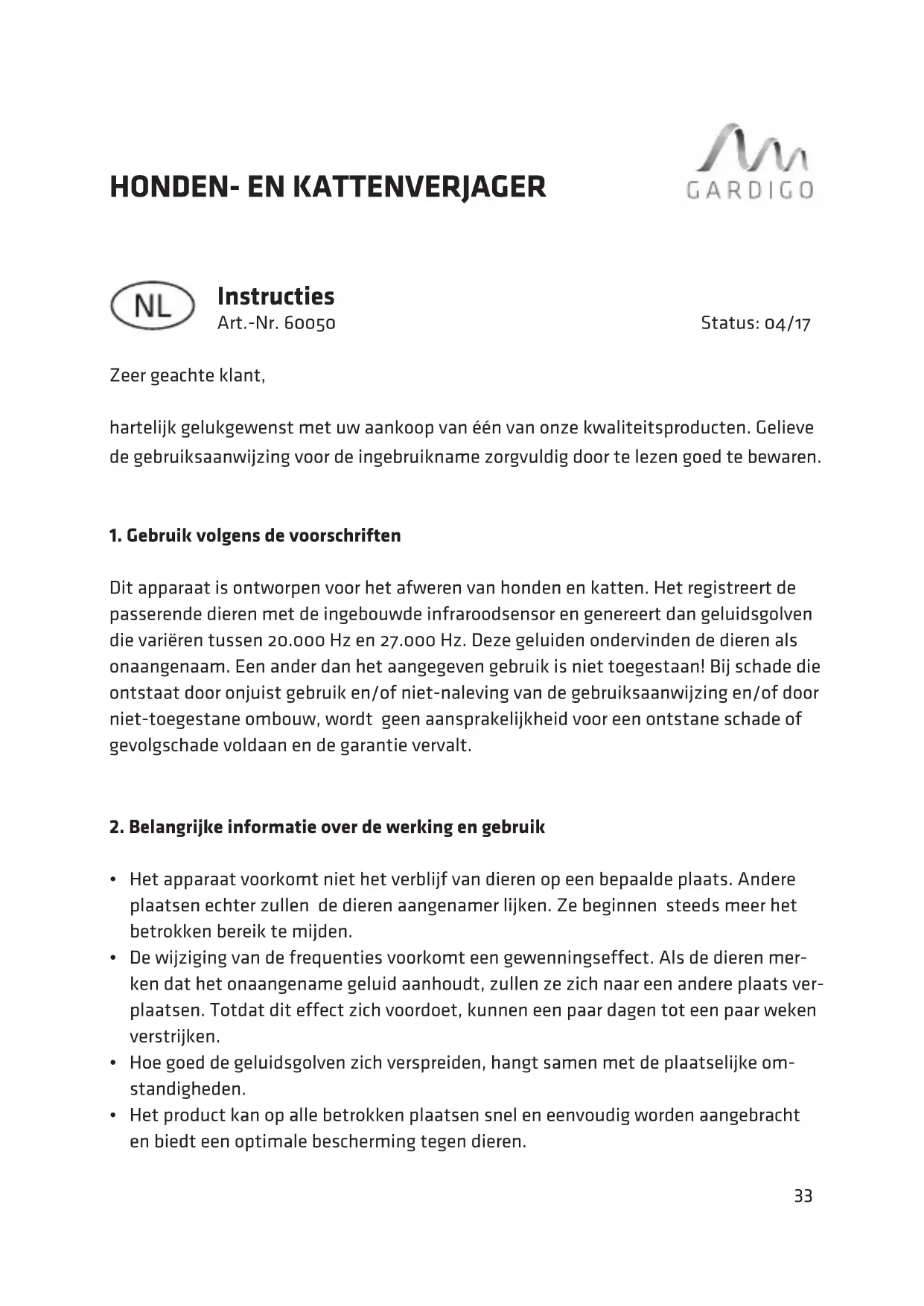 GEBRUIKSAANWIJZING 60050 Gardigo
