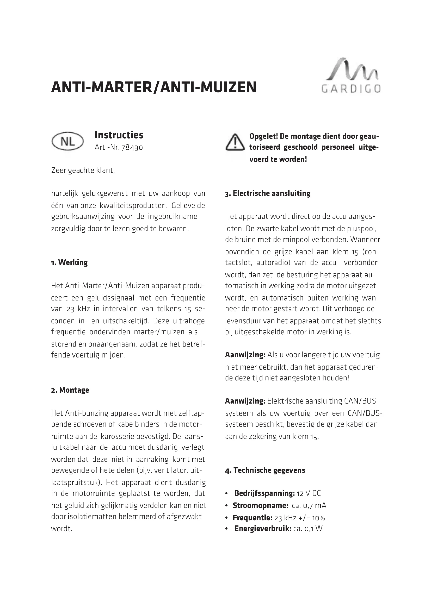GEBRUIKSAANWIJZING 78490 Gardigo
