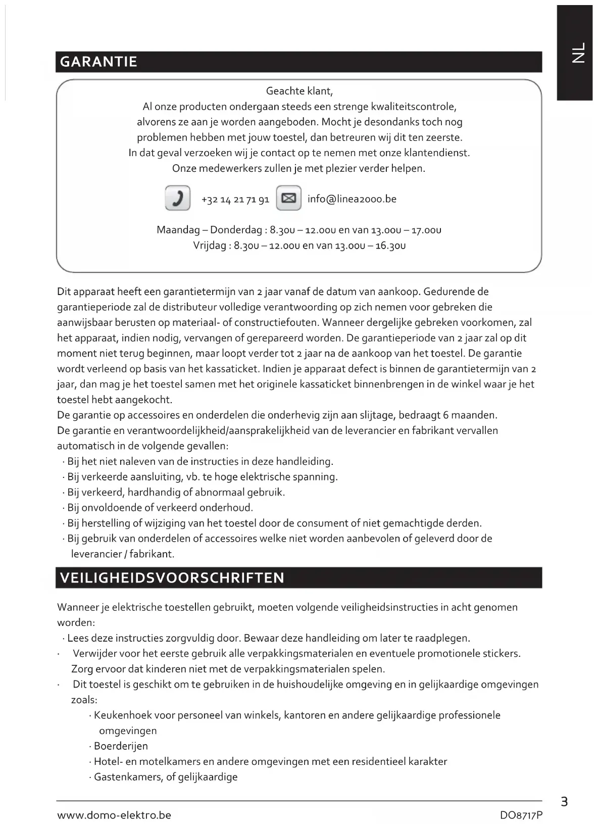 - Laat een werkend toestel niet zonder toezicht achter.5 DO8717P www.domo-elektro.be