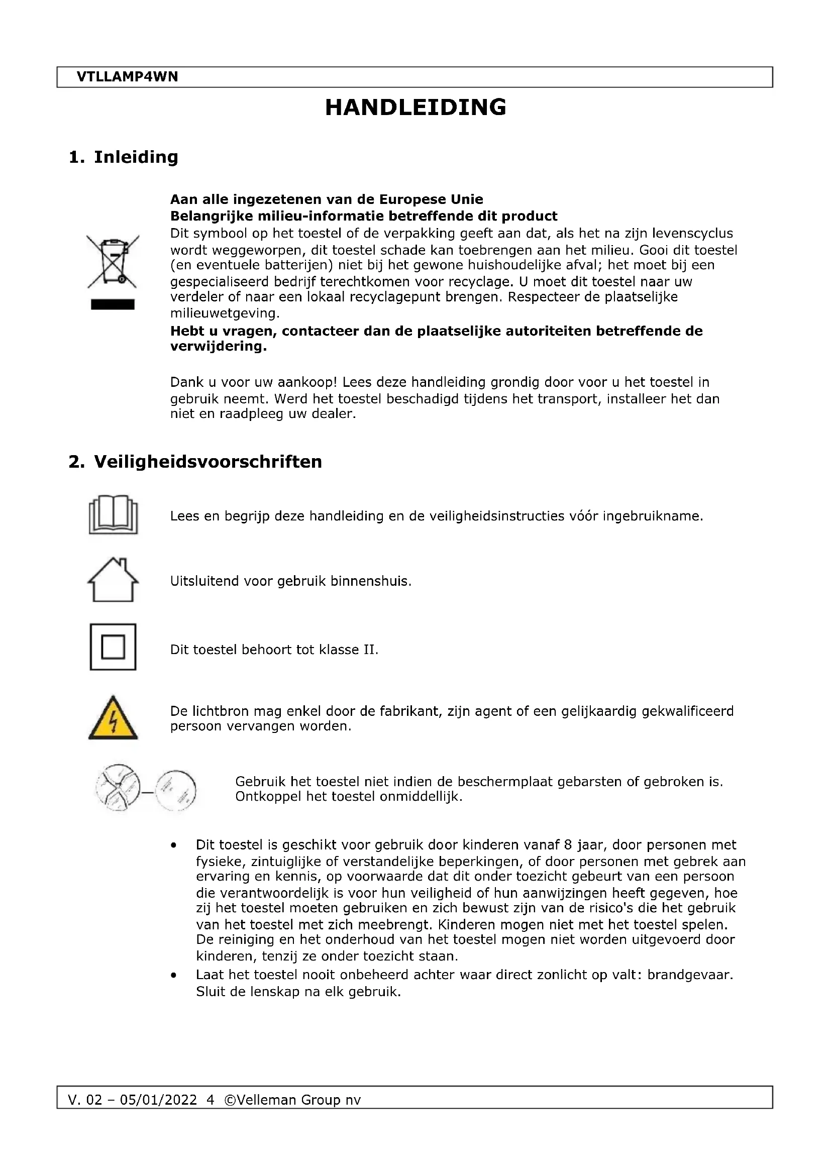 V. 02 – 05/01/2022 5 ©Velleman Group nv