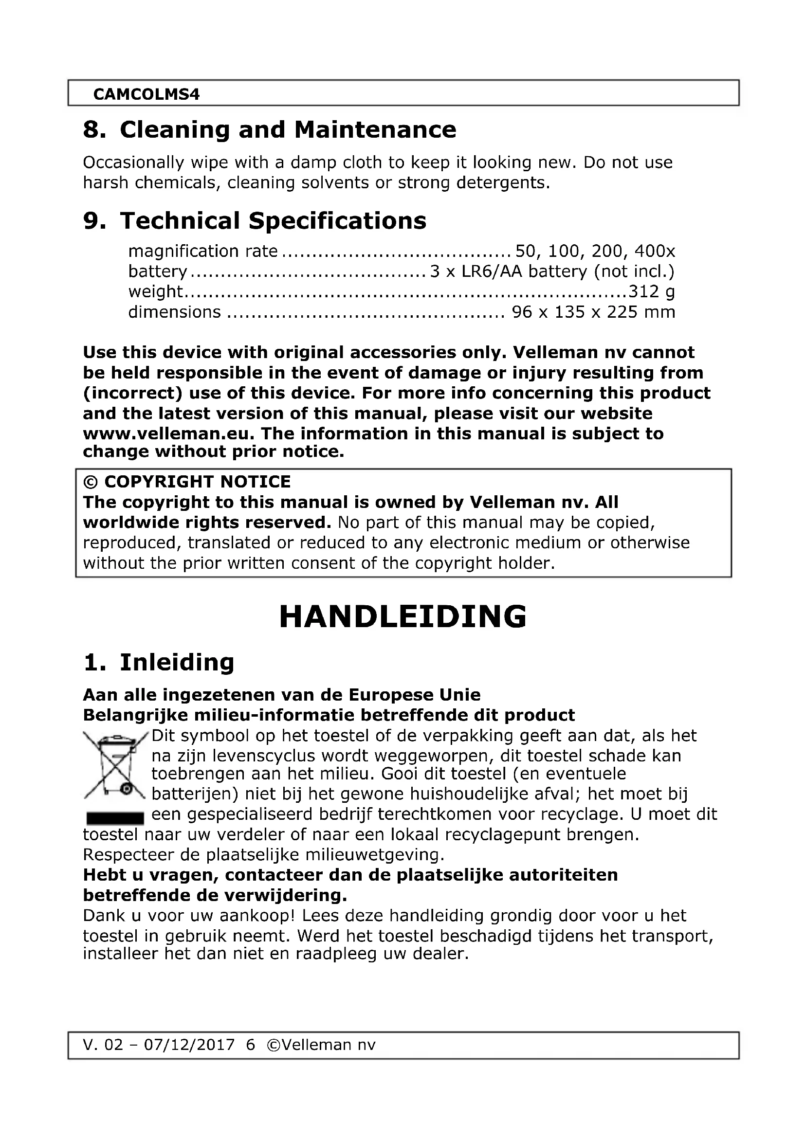V. 02 – 07/12/2017 7 ©Velleman nv
