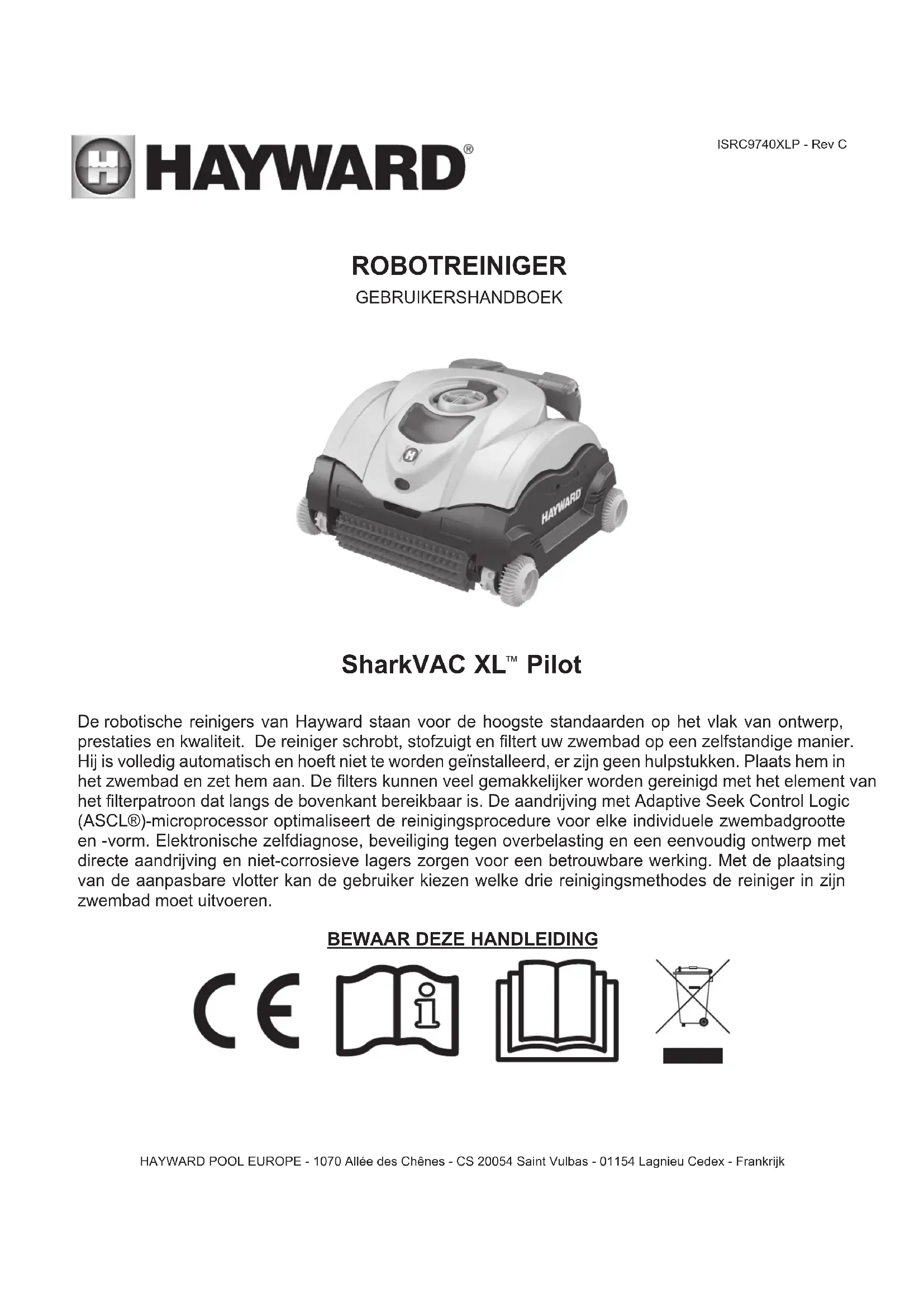 HAYWARD POOL EUROPE - 1070 Allée des Chênes - CS 20054 Saint Vulbas - 01154 Lagnieu Cedex - Frankrijk ISRC9740XLP - Rev C ROBOTREINIGER GEBRUIKERSHANDBOEKHayward garandeert alleen de kwaliteit, de prestaties en de veiligheid van zijn producten als ze worden gemonteerd met originele, door Hayward gefabriceerde onderdelen. Bij het gebruik van niet-originele, niet door Hayward gefabriceerde onderdelen vervalt de garantie. Pagina 2 van 18 SharkVAC XL™ Pilot Robotreiniger Rev. C De fundamentele veiligheidsmaatregelen moeten altijd worden gevolgd, met inbegrip van de volgende: Als u de instructies niet volgt, kan dat leiden tot ernstige verwondingen en/of de dood