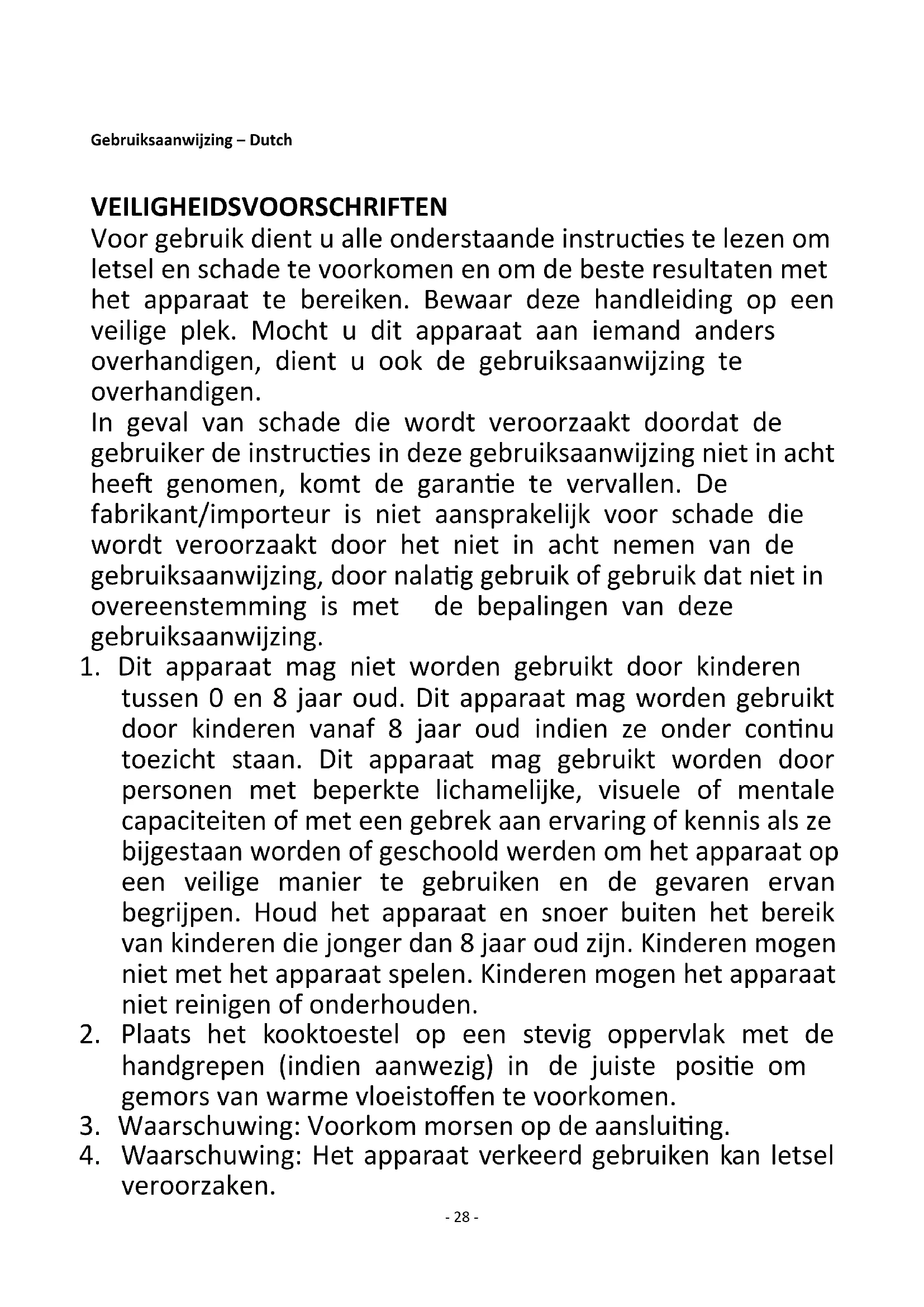 1. Dit apparaat mag niet worden gebruikt door kinderen