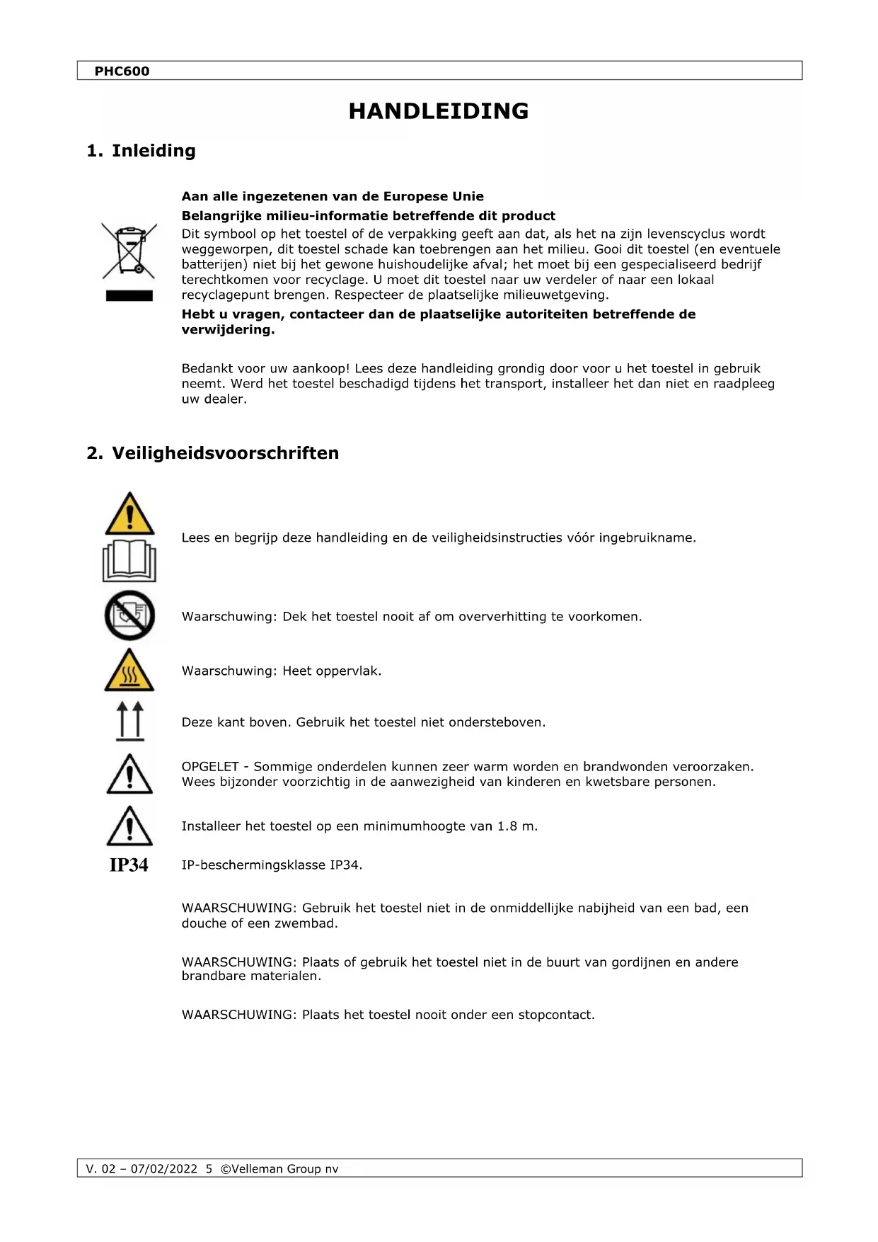 Velleman Group nv heeft het auteursrecht voor deze handleiding. Alle wereldwijde rechten voorbehouden. Het is niet toegestaan om deze handleiding of gedeelten ervan over te nemen, te kopiëren, te vertalen, te bewerken en op te slaan op een elektronisch medium zonder voorafgaande schriftelijke toestemming van de rechthebbende.PHC600