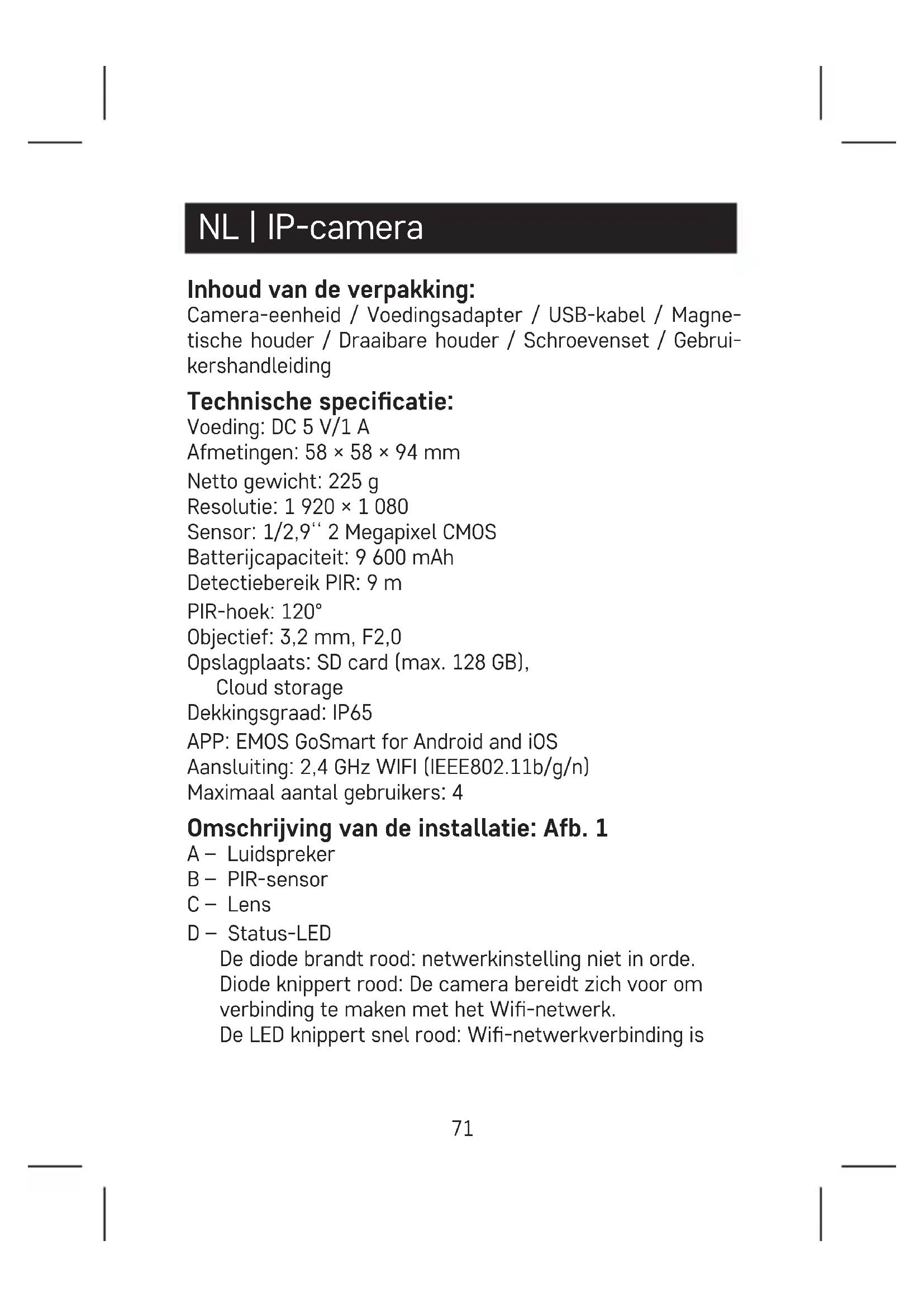 Download de handleiding voor uw Bewakingscamera in PDF-formaat gratis! Vind uw handleiding H4053 - Emos en neem uw elektronisch apparaat weer in handen. Op deze pagina staan alle documenten die nodig zijn voor het gebruik van uw apparaat. H4053 van het merk Emos.