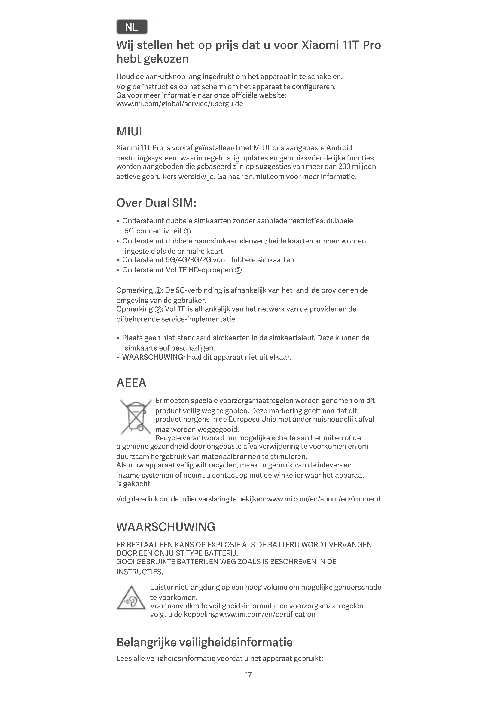 GEBRUIKSAANWIJZING Mi 11T Pro Xiaomi