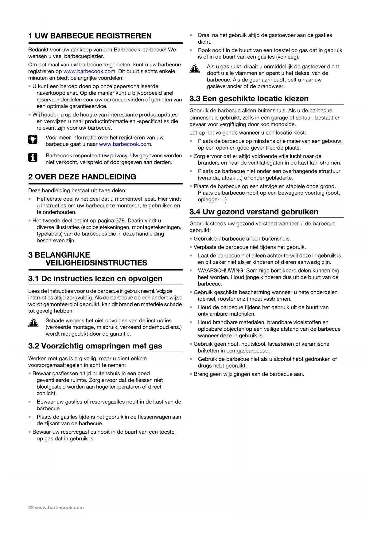 1 Uw barbecue registreren....................................................22 2 Over deze handleiding .......................................................22 3 Belangrijke veiligheidsinstructies .......................................22