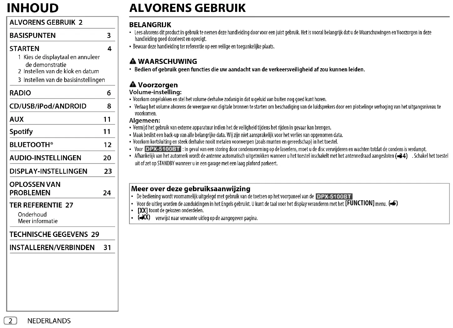 Voor de CD: Alleen voor MP3/WMA/AAC-bestanden. Werkt niet voor een iPod/ANDROID. JS_KWD_DPX_5100BT_EN_NL.indd 8JS_KWD_DPX_5100BT_EN_NL.indd 8 29/8/2017 12:08:46 PM29/8/2017 12:08:46 PMNEDERLANDS