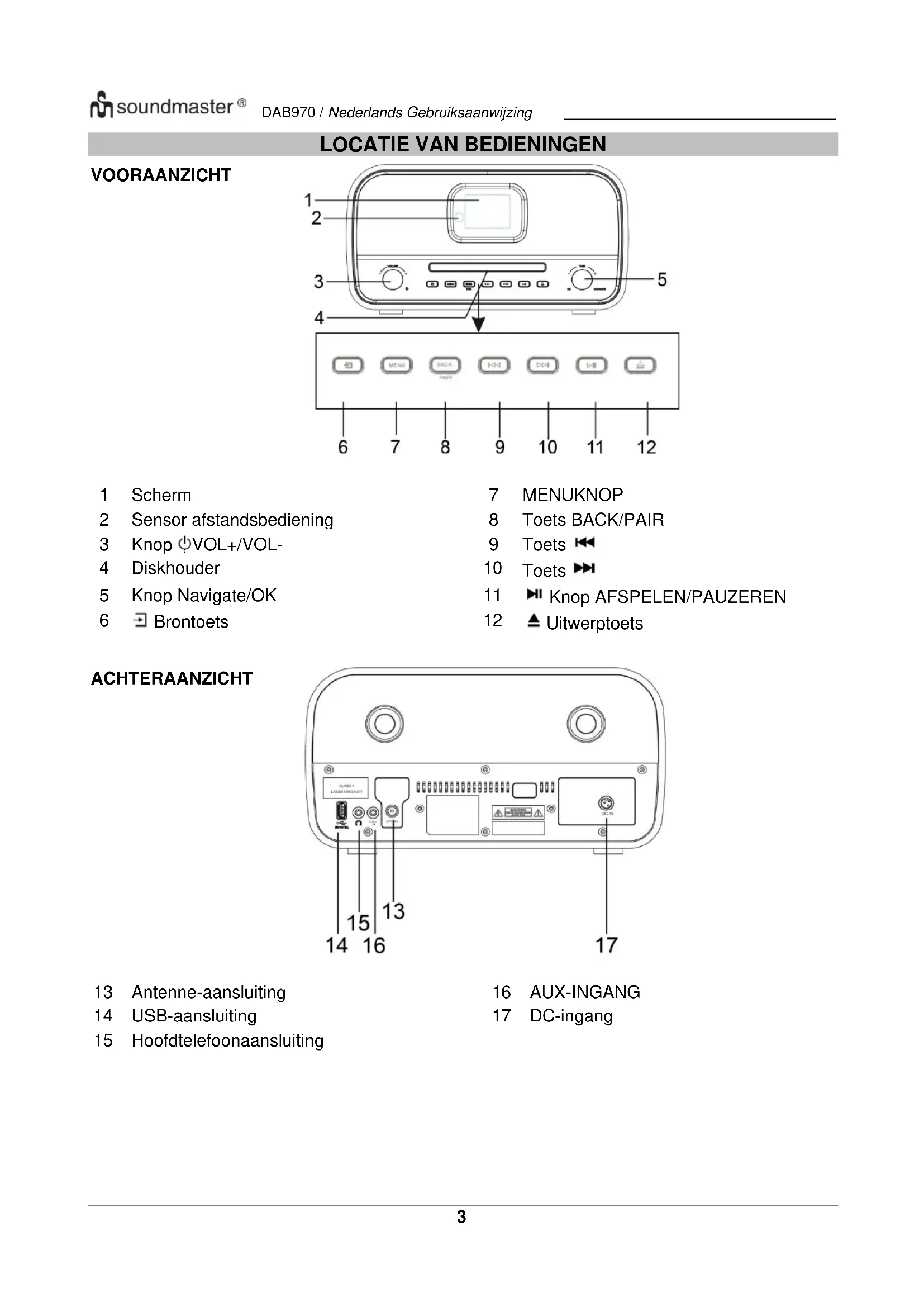 - Dit apparaat is voor gebuik in omgevingen met een gematigd klimaat; niet geschikt in landen met een tropisch klimaat.DAB970 / Nederlands Gebruiksaanwijzing
