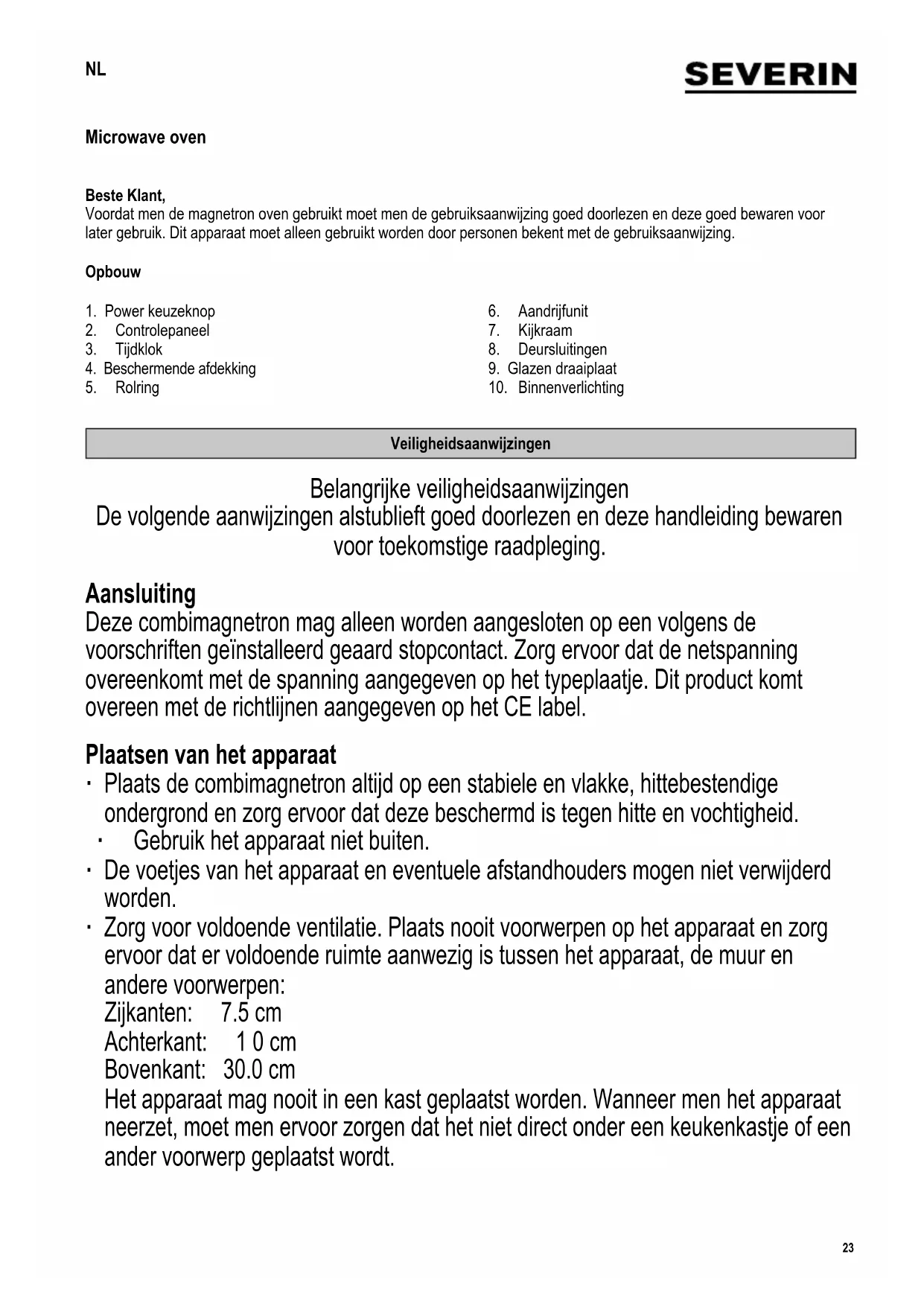 GEBRUIKSAANWIJZING MW 7885 SEVERIN