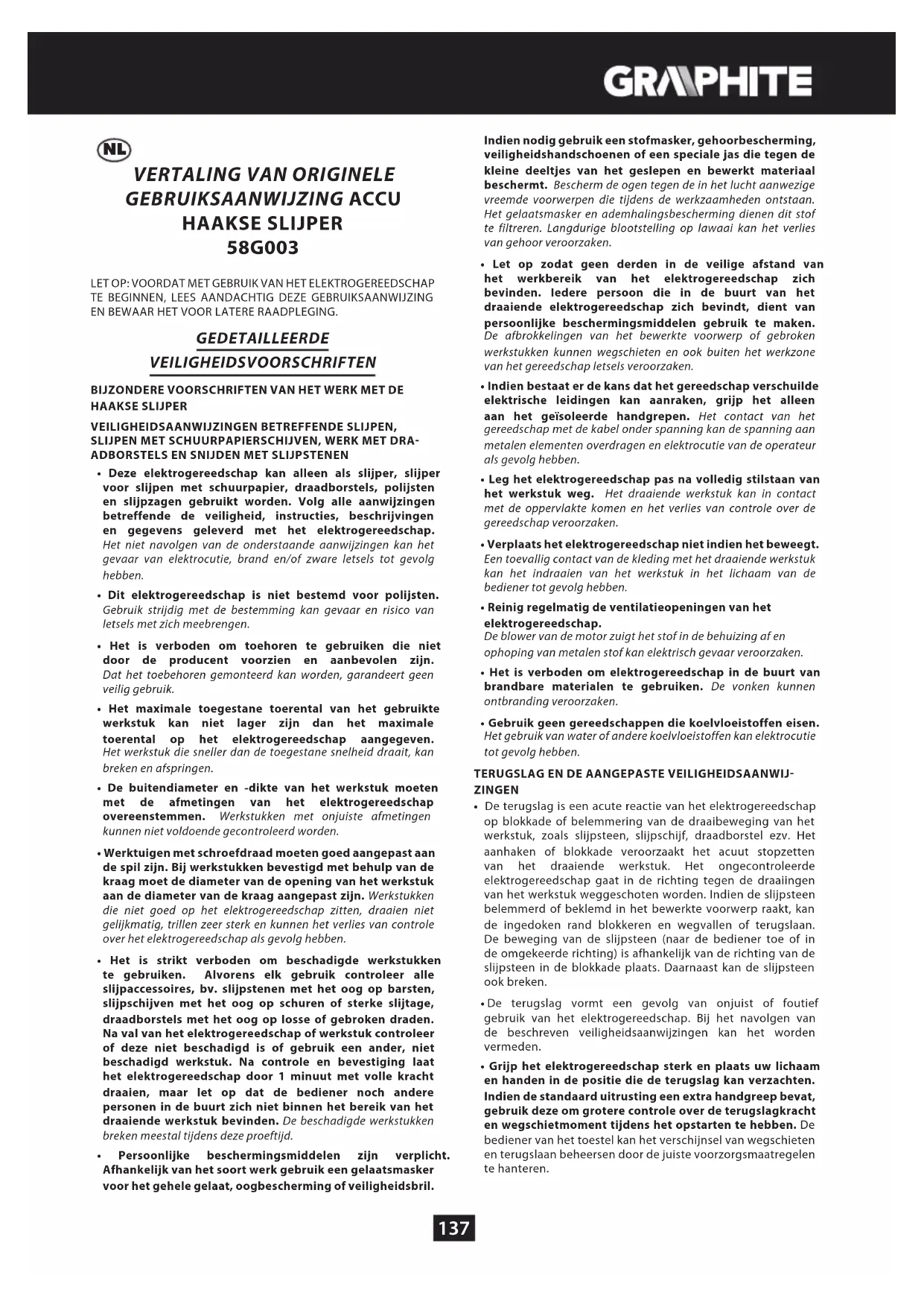 GEBRUIKSAANWIJZING 58G003 Graphite