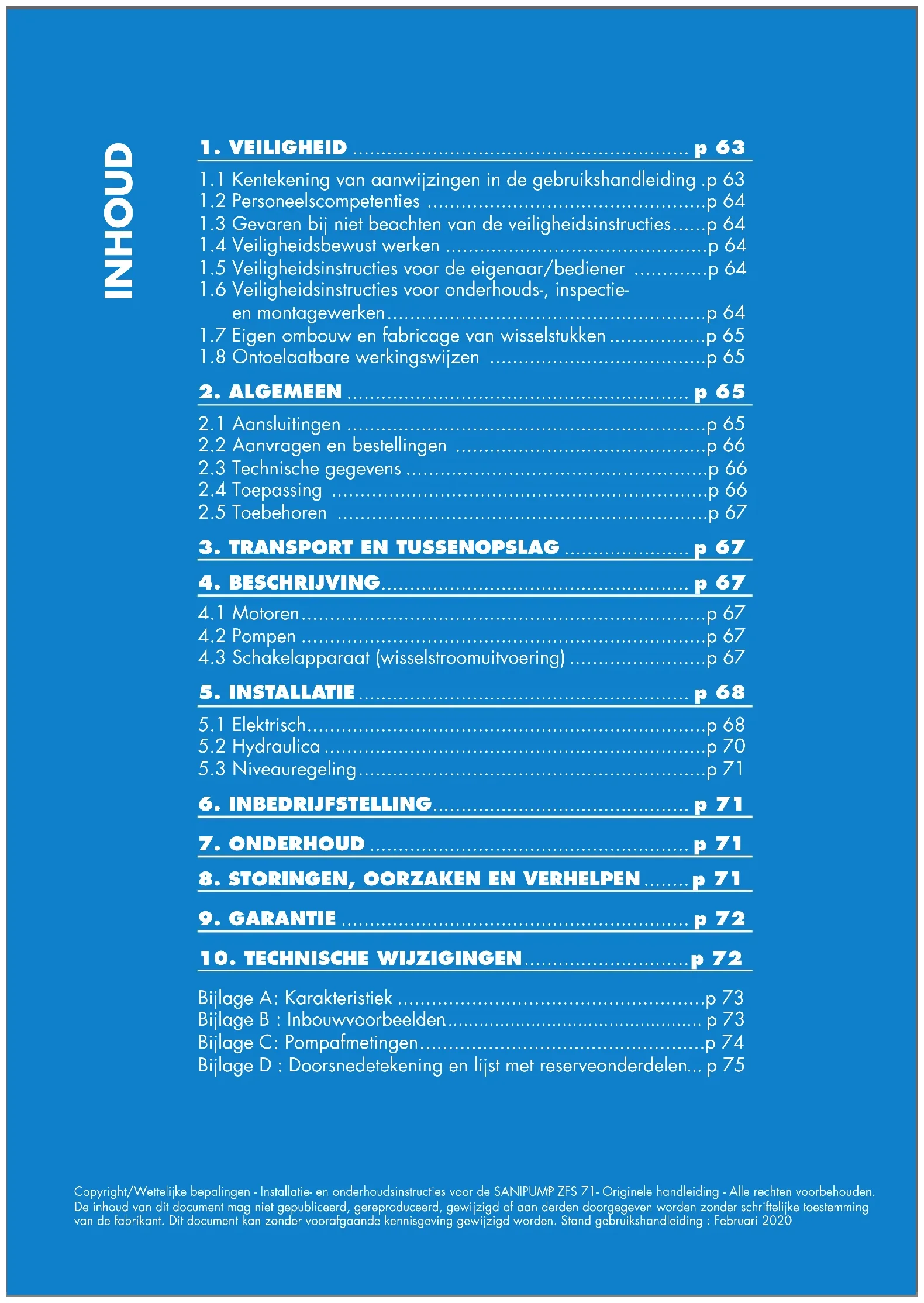 1.3 Gevaren bij niet beachten van de veiligheidsinstructies ......p 64