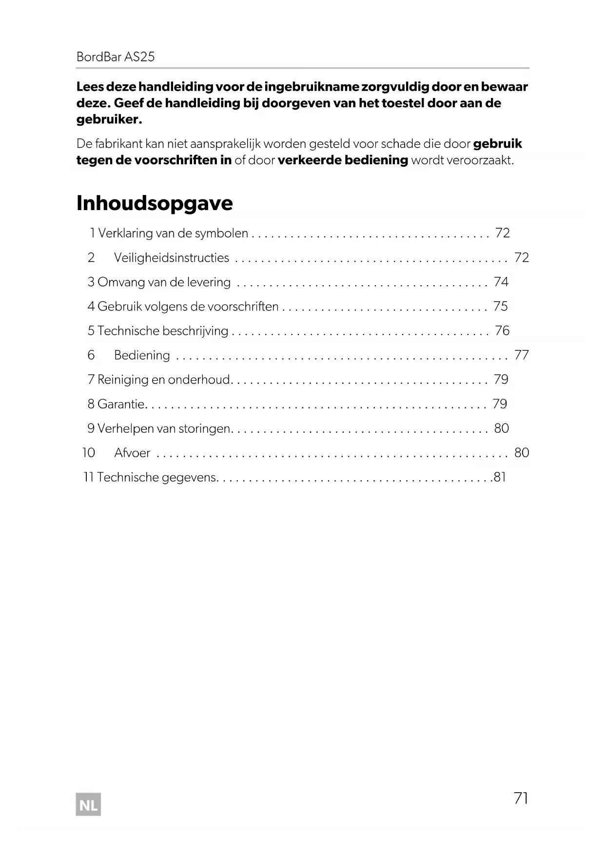- 11 Technische gegevens AS25-O-16s.book Seite 71 Montag, 7. November 2016 11:47 11NL Verklaring van de symbolen BordBar AS25 p. 81