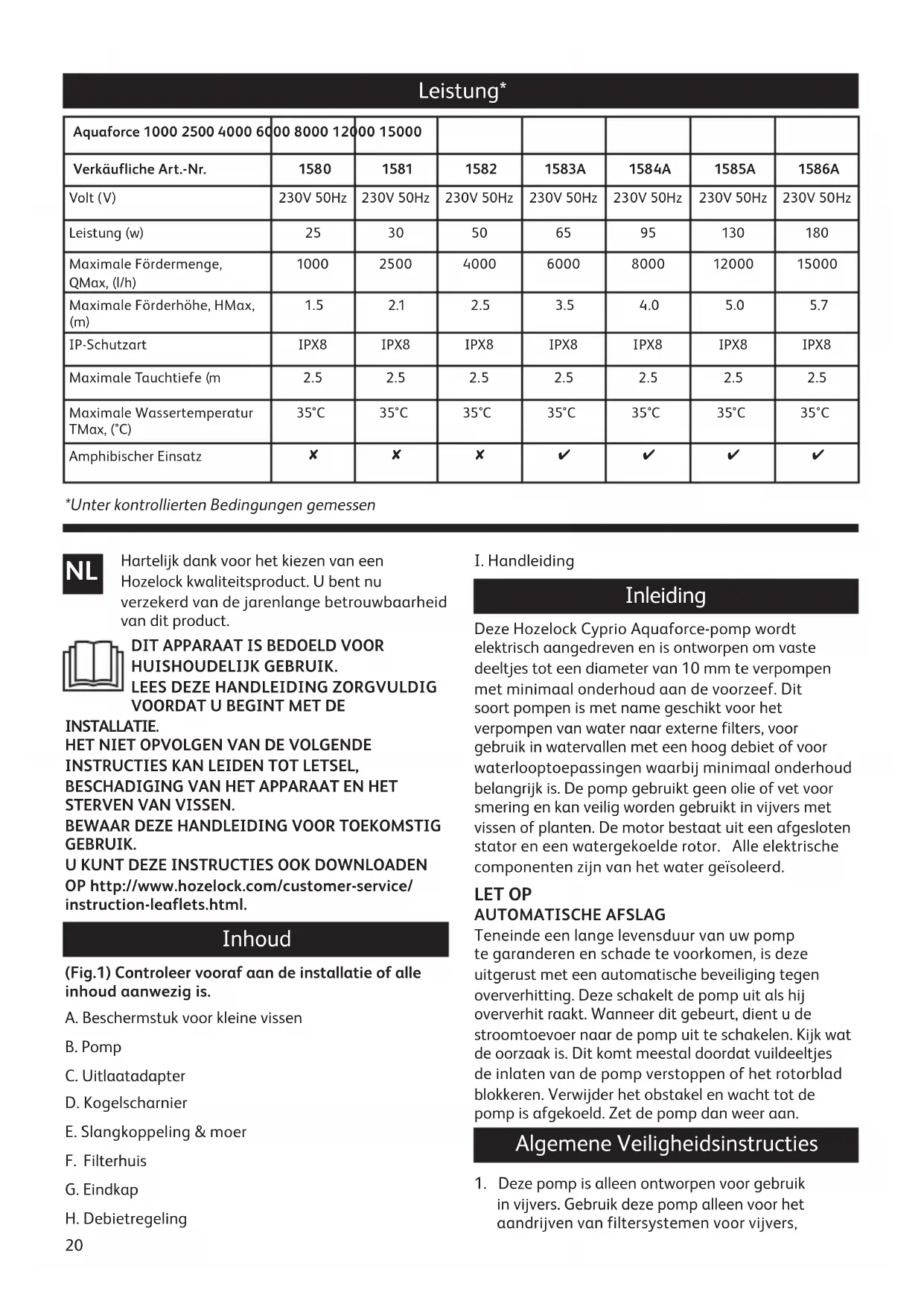 GEBRUIKSAANWIJZING Aquaforce 15000 HOZELOCK