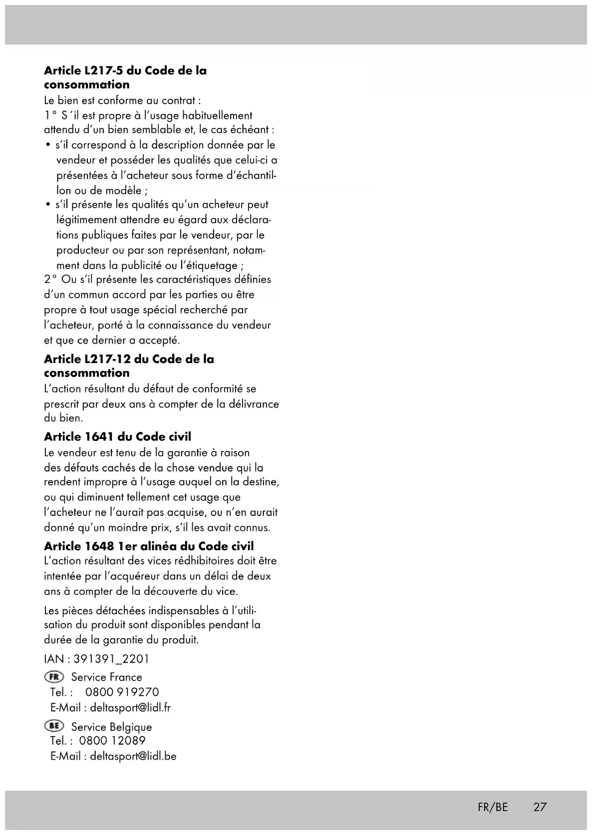 Belangrijk: let er hierbij op dat uw bovenbenen naast elkaar blijven. Kan- tel uw bekken naar voren, maar houd uw bovenlichaam rechtop. Opslag, reiniging Bewaar het artikel wanneer u dit niet gebruikt altijd droog en schoon op kamertemperatuur. Reinig het artikel alleen met een vochtige schoonmaakdoek en droog het vervolgens af. BELANGRIJK! Reinig nooit met agressieve reini- gingsmiddelen. Afvalverwerking Voer het artikel en verpakkingsmaterialen in overeenstemming met actuele lokale voor- schriften af. Verpakkingsmaterialen, zoals bv. foliezakjes, horen niet thuis in kinderhanden. Berg het verpakkingsmateriaal buiten het bereik van kinderen op. Voer de producten en verpakkingen op milieuvriendelijke wijze af. De recyclingcode dient om verschillende materialen te kenmerken ten behoeve van hergebruik via het recyclingproces. De code bestaat uit het recyclingsymbool, dat het recyclingproces weerspiegelt, en een getal dat het materiaal identificeert. Opmerkingen over garantie en serviceafhandeling Het artikel werd met de grootste zorgvuldigheid en onder permanent toezicht geproduceerd. De firma DELTA-SPORT HANDELSKONTOR GmbH verleent particuliere eindklanten op dit artikel drie jaar garantie, te rekenen vanaf de datum van aankoop (garantietermijn) en dit op grond van de volgende bepalingen. De garantie geldt alleen voor materiaal- en verwerkingsfouten. De garantie is niet van toepassing op onderde- len die aan een normale slijtage onderhevig zijn en daarom als niet-slijtvaste onderdelen te beschouwen zijn (bv. batterijen) en evenmin op breekbare onderdelen, bv. schakelaars, accu’s of onderdelen die van glas gemaakt zijn. NL/BE33 Uit de garantie voortvloeiende claims zijn uitgeslo- ten als het artikel onvakkundig, verkeerd of niet in het kader van de voorziene bepaling of in het ka- der van het voorziene gebruiksdoeleinde gebruikt werd of indien richtlijnen in de gebruiksaanwijzing niet in acht genomen werden, tenzij de eindklant aantoont dat er sprake is van een materiaal- of verwerkingsfout die niet op één van de hoger vermelde omstandigheden gebaseerd is. Uit de garantie voortvloeiende claims kunnen alleen tijdens de garantieperiode op vertoon van de originele kassabon ingediend wor- den. Gelieve daarom de originele kassabon te bewaren. De garantieperiode wordt door eventuele reparaties op grond van de garantie, wettelijke waarborg of coulance niet verlengd. Dit geldt ook voor vervangen en gerepareerde onderdelen. Gelieve u bij klachten in eerste instantie tot de hieronder vermelde servicehotline te richten of met ons per e-mail contact op te nemen. Is er sprake van een garantiegeval, dan wordt het ar- tikel door ons – naar onze keuze – voor u gratis gerepareerd, wordt het vervangen of wordt de aankoopsom terugbetaald. Verdere rechten op grond van de garantie bestaan niet. Uw wettelijke rechten, in het bijzonder rechten op garantie tegenover de betreffende verkoper, worden door deze garantie niet beperkt. IAN: 391391_2201 Service België Tel.: 0800 12089 E-Mail: deltasport@lidl.be Service Nederland Tel.: 08000249630 E-Mail: deltasport@lidl.nl NL/BE34 Gratulujemy! Decydując się na ten produkt, otrzymują Pań- stwo towar wysokiej jakości. Należy zapoznać się z produktem przed jego pierwszym użyciem. Należy uważnie przeczytać nastę- pującą instrukcję użytkowania. Produkt ten należy użytkować wyłącznie w opisany sposób oraz zgodnie ze wskazanym przeznaczeniem. Niniejszą instrukcję użytko- wania należy przechowywać w bezpiecznym miejscu. Przekazując produkt innej osobie, należy upewnić się, że otrzyma ona także całą dokumentację dotyczącą produktu. Zakres dostawy 1 x kettlebell 1 x instrukcja użytkowania 1 x skrócona instrukcja Dane techniczne KK-11471: ok. 4 kg KK-11472: ok. 6 kg KK-11473: ok. 8 kg Data produkcji (miesiąc/rok): 06/2022 Użytkowanie zgodne z przeznaczeniem Niniejszy produkt został zaprojektowany jako urządzenie treningowe umożliwiające trening całego ciała. Produkt jest przeznaczony do użytku prywatnego i nie nadaje się do celów medycznych, terapeutycznych i komercyjnych. Wskazówki bezpieczeństwa Zagrożenie życia!