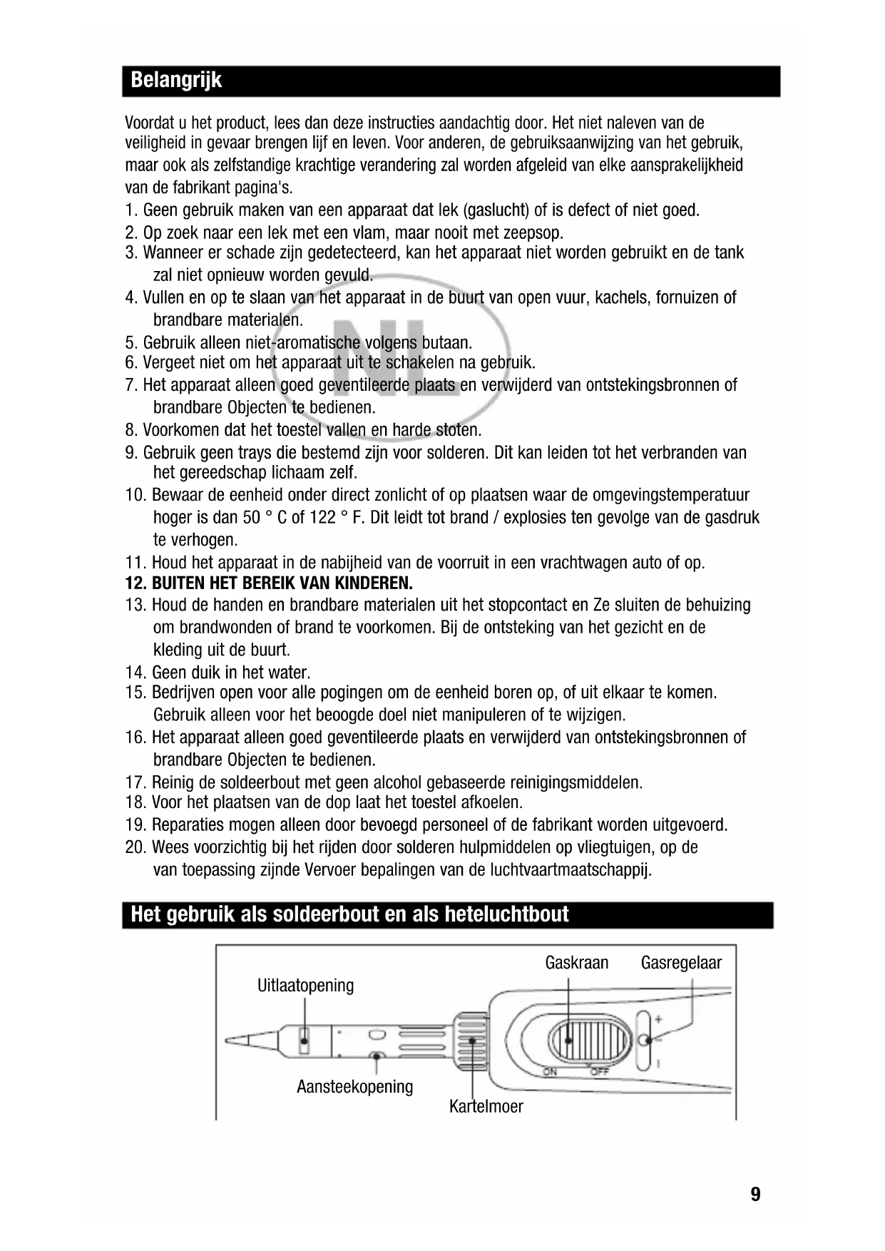 van toepassing zijnde Vervoer bepalingen van de luchtvaartmaatschappij. Belangrijk Uitlaatopening Aansteekopening Kartelmoer Gasregelaar Gaskraan Het gebruik als soldeerbout en als heteluchtbout WP 60K_9x15:Pyropen jr.qxd 06.12.12 16:04 Seite 810 Het gebruik als heteluchtbout Aanstee- kopening Gaskraan Gasregelaar Aanwijzingen voor het aansteken