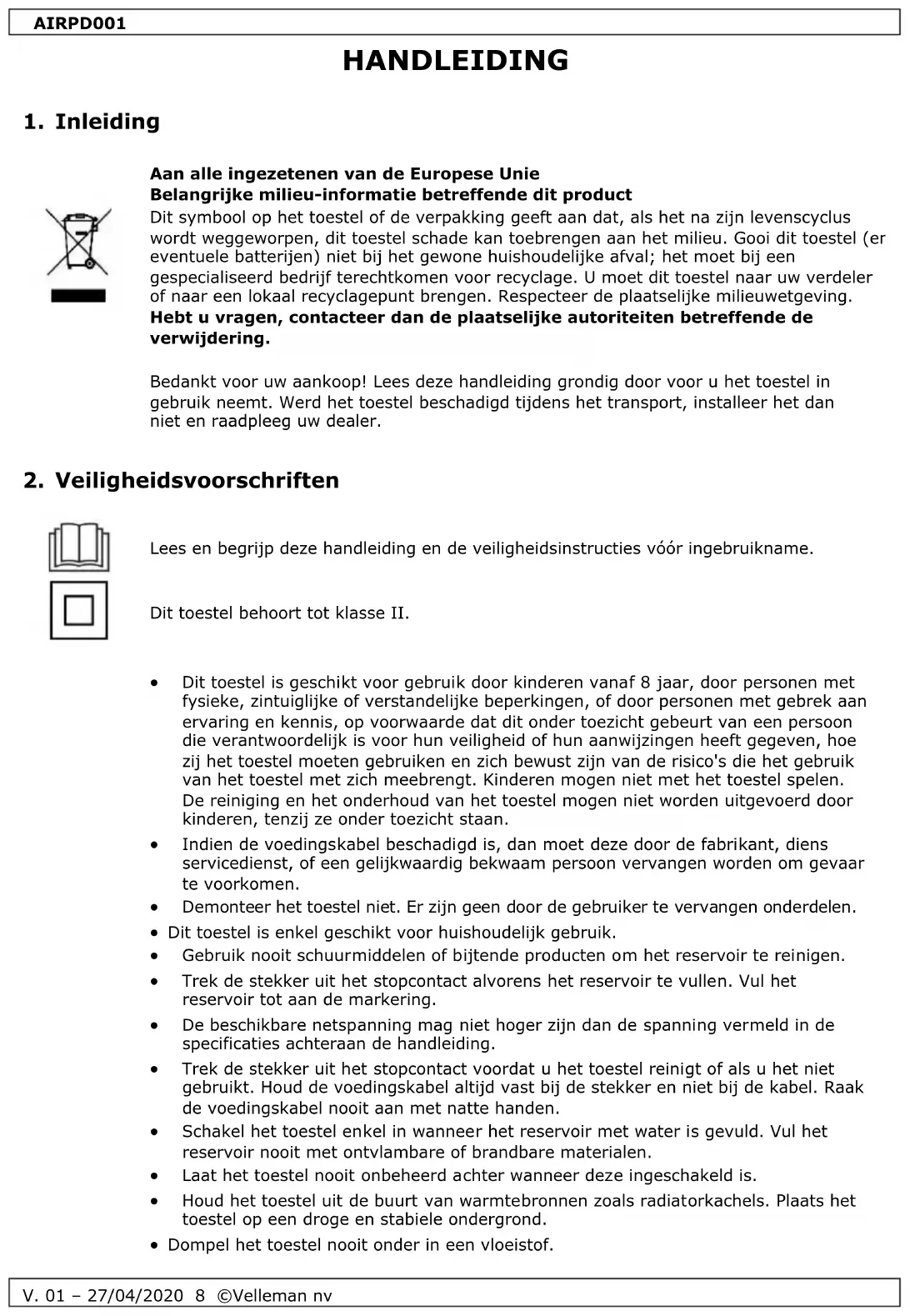 V. 01 – 27/04/2020 9 ©Velleman nv