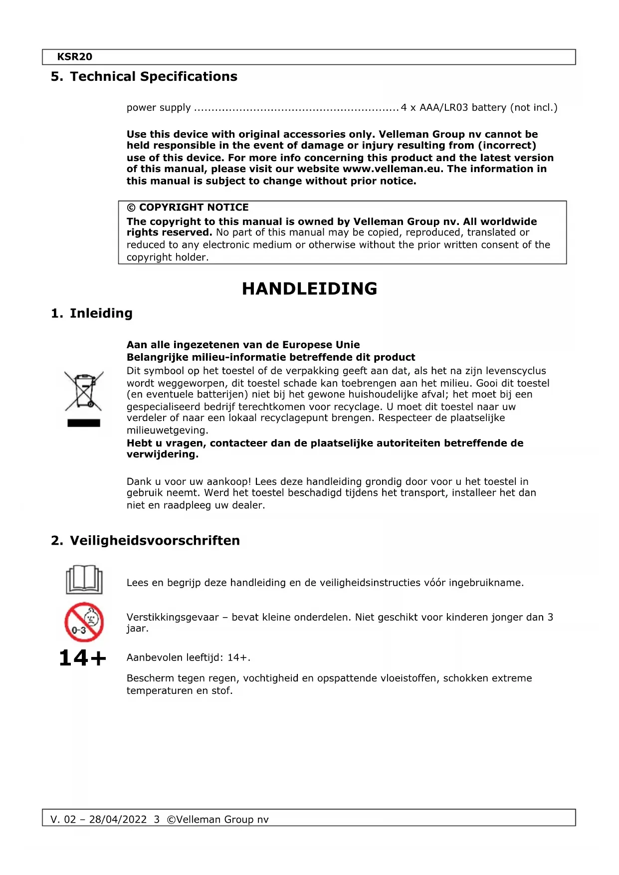 V. 02 – 28/04/2022 4 ©Velleman Group nv