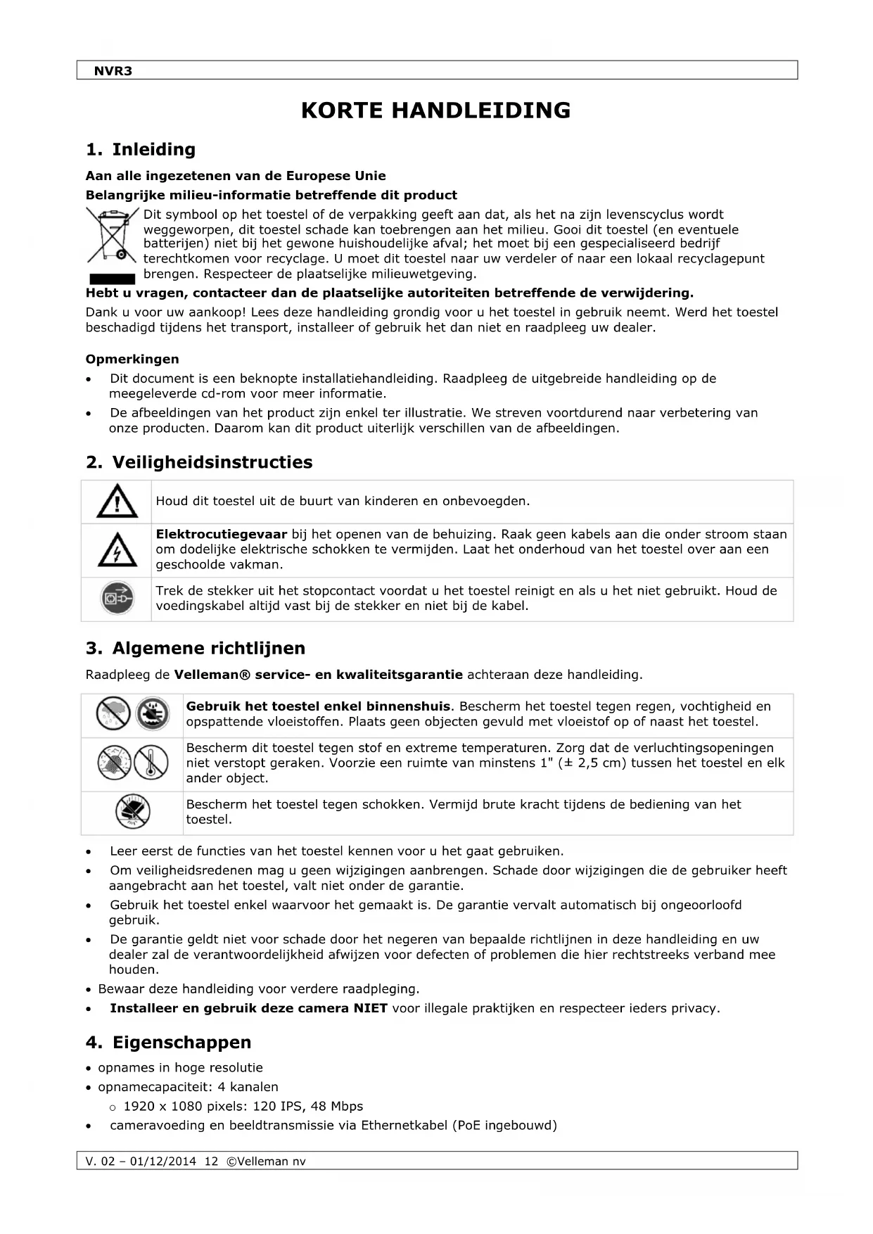 GEBRUIKSAANWIJZING NVR3 VELLEMAN