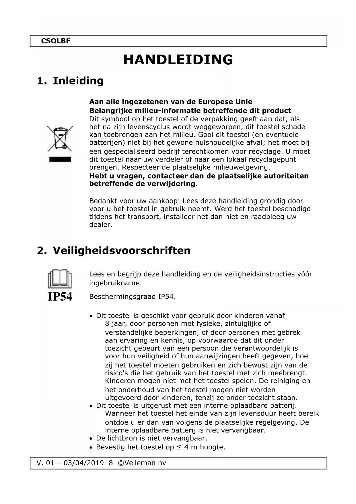 V. 01 – 03/04/2019 10 ©Velleman nv