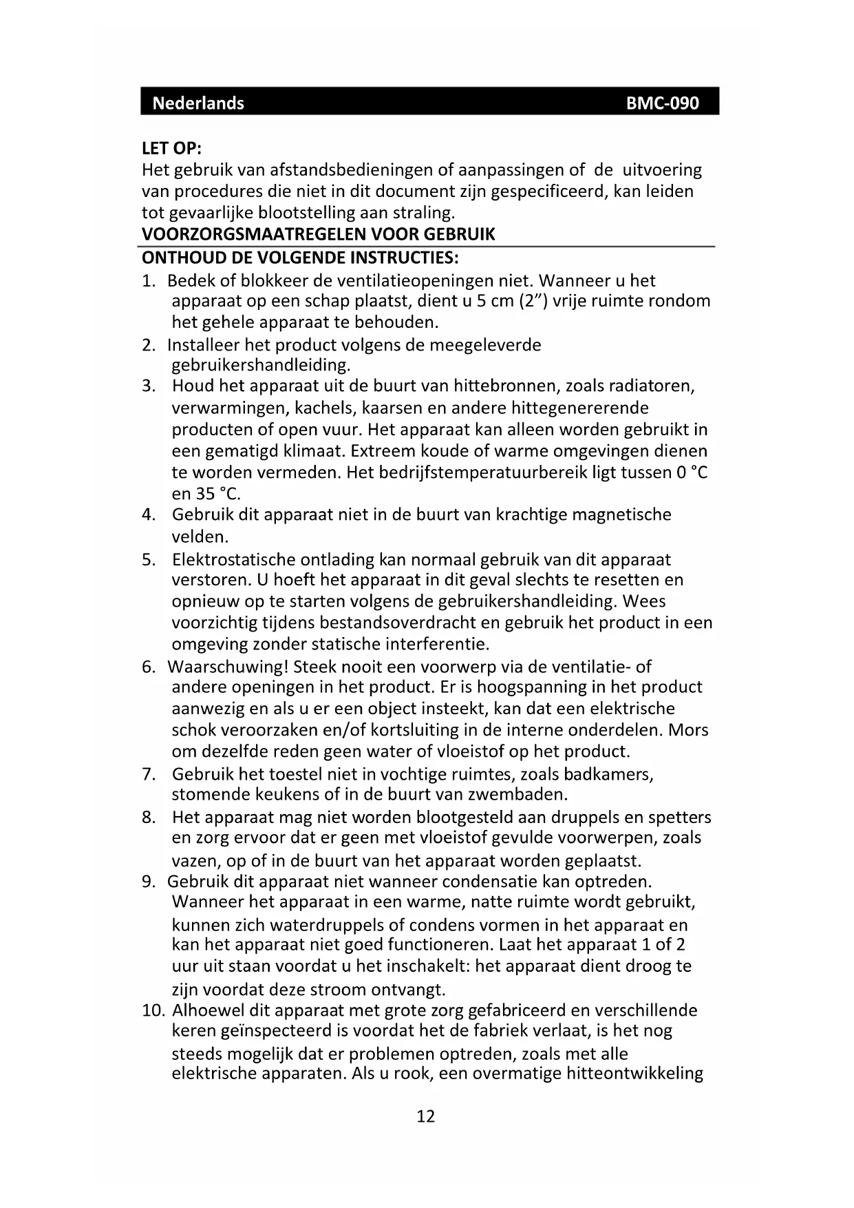 10. Alhoewel dit apparaat met grote zorg gefabriceerd en verschillende
