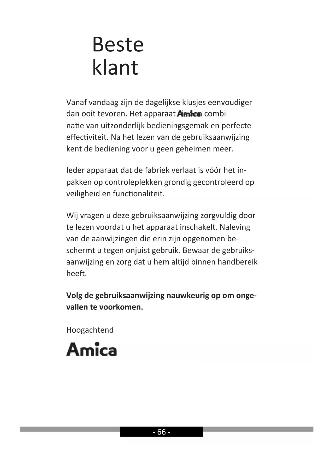 - Wij adviseren deze gebruiksaanwijzing zorgvuldig te bewaren om te kunnen raadplegen in de toe- komst of doorgeven aan de volgende gebruiker.
