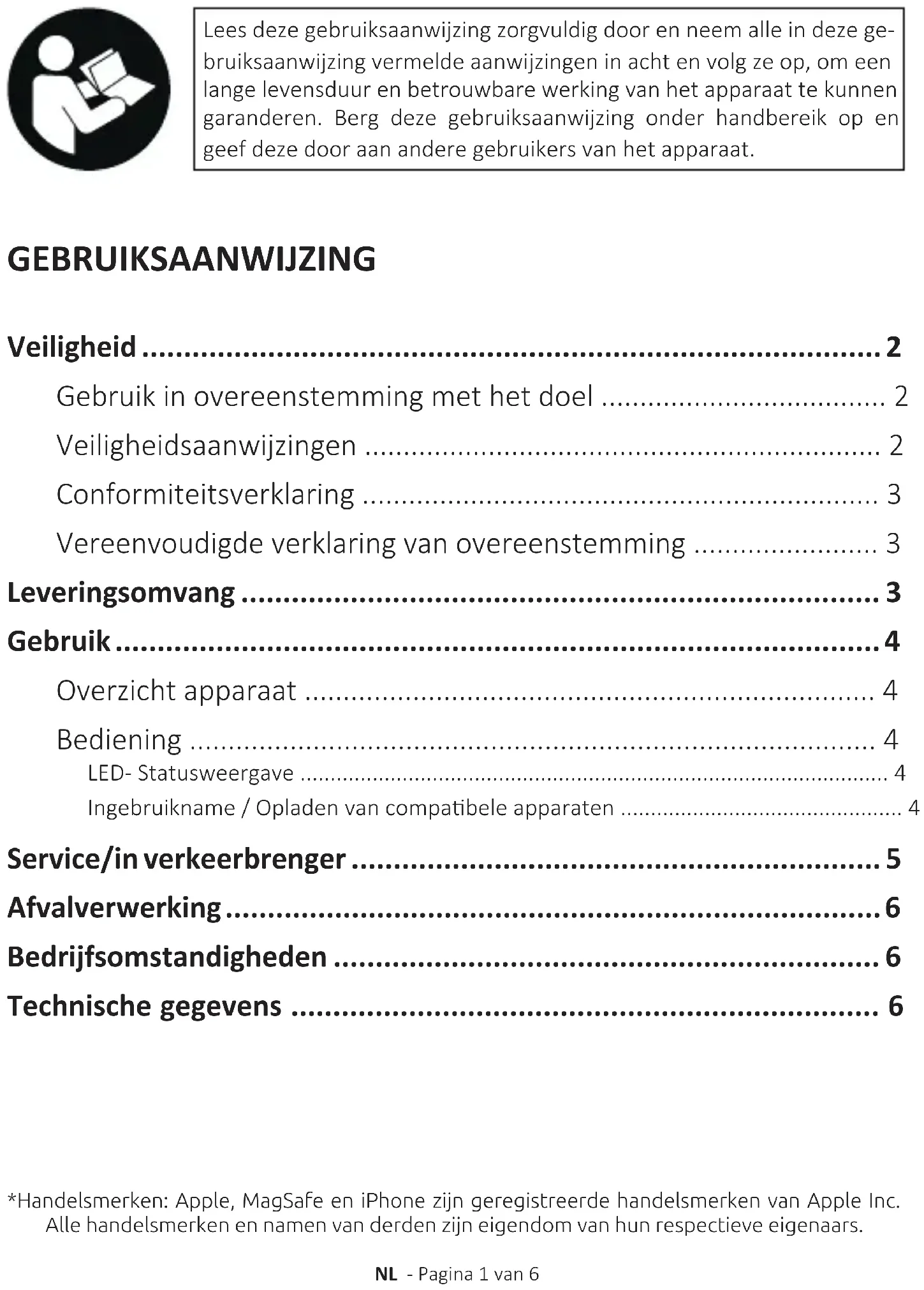 - Ingebruikname / Opladen van compabele apparaten p. 4