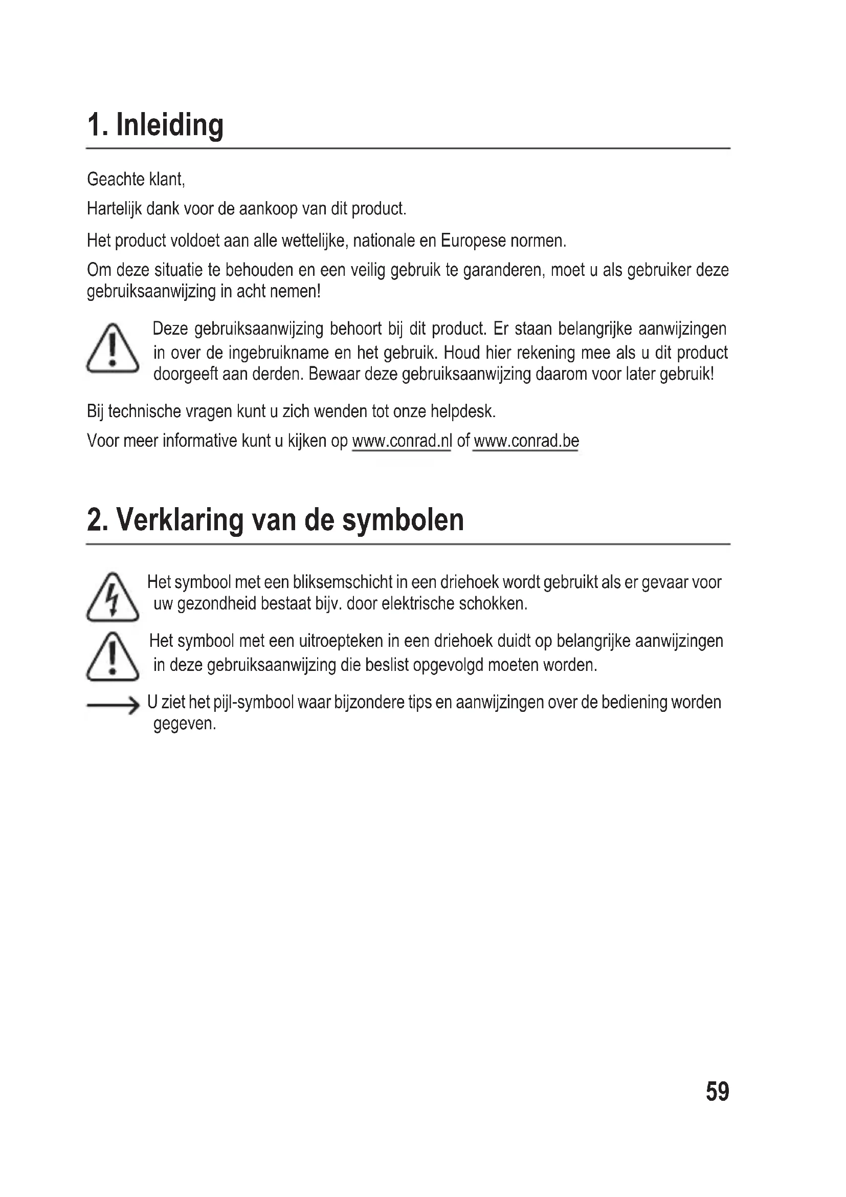 Geachte klant, Hartelijk dank voor de aankoop van dit product. Het product voldoet aan alle wettelijke, nationale en Europese normen. Om deze situatie te behouden en een veilig gebruik te garanderen, moet u als gebruiker deze gebruiksaanwijzing in acht nemen! Deze gebruiksaanwijzing behoort bij dit product. Er staan belangrijke aanwijzingen in over de ingebruikname en het gebruik. Houd hier rekening mee als u dit product doorgeeft aan derden. Bewaar deze gebruiksaanwijzing daarom voor later gebruik! Bij technische vragen kunt u zich wenden tot onze helpdesk. Voor meer informative kunt u kijken op www.conrad.nl of www.conrad.be