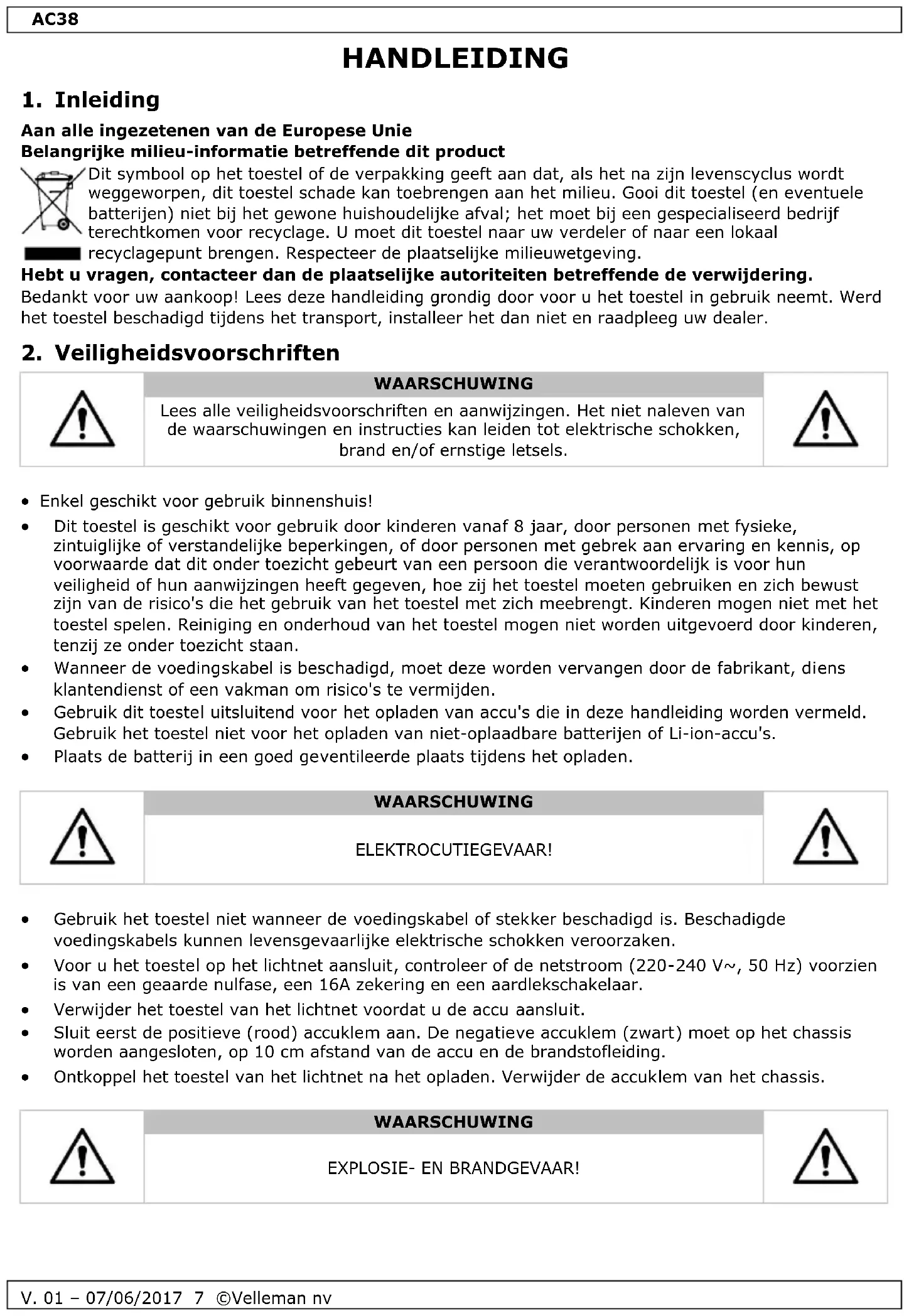 V. 01 – 07/06/2017 10 ©Velleman nv
