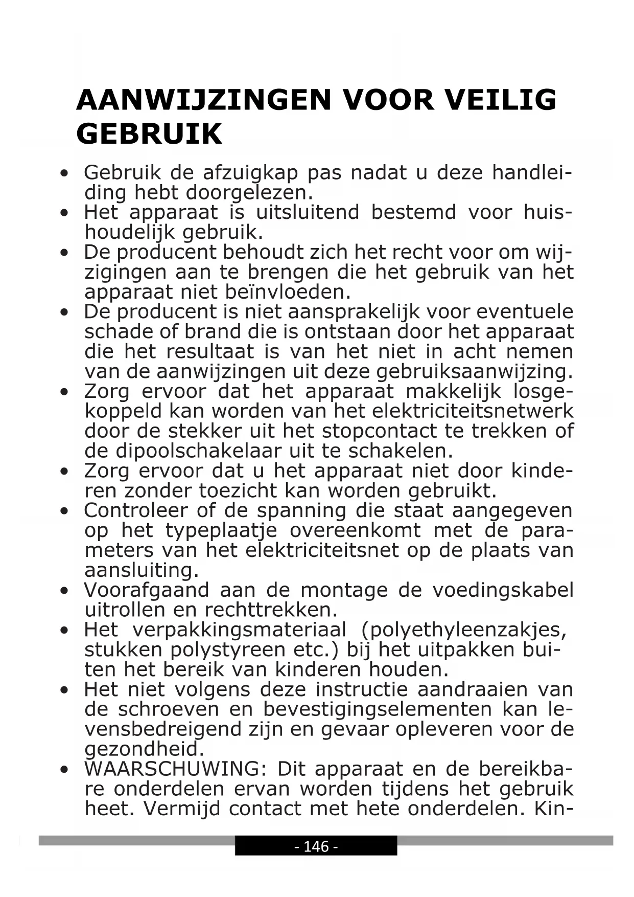 AANWIJZINGEN VOOR VEILIG GEBRUIK 146