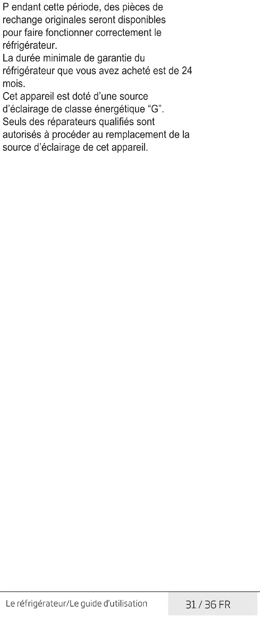 WAARSCHUWING: Als het probleem aanhoudt nadat u de instructies in deze sectie hebt gevolgd, kunt u contact opnemen met uw verkoper of een Geautoriseerde Dienst. Probeer het product niet te repareren.27 / 36 NL Koelkast/Gebruikershandleiding DISCLAIMER / WAARSCHUWING Sommige (eenvoudige) defecten kunnen correct worden behandeld door de eindgebruiker zonder dat dit aanleiding geeft tot veiligheidsproblemen of een onveilig gebruik, op voorwaarde dat ze worden uitgevoerd binnen de limieten en in overeenstemming met de volgende instructies (zie het hoofdstuk “Zelf-reparatie”). Om die reden, tenzij anderzijds toegelaten in het onderstaande hoofdstuk ‘Zelf-reparatie”, moeten reparaties worden uitgevoerd door geregistreerde professionele monteurs om veiligheidsproblemen te voorkomen. Een geregistreerde professionele monteur is een professionele monteur die toegang heeft gekregen tot de instructies en de lijst met reserveonderdelen van dit product door de fabrikant, in overeenstemming met de methoden beschreven in wetsbesluiten in overeenstemming met Richtlijn 2009/125/EC. Hoewel, de onderhouds- en reparatiewerken in het kader van de garantievoorwaarden mogen uitsluitend worden uitgevoerd door de gespecialiseerd vertegenwoordiger (m.a.w. geautoriseerde professionele monteurs) die u kunt bereiken via het telefoonnummer vermeld in de gebruikshandleiding/garantiekaart of via uw geautoriseerde verdeler. Om die reden zullen reparaties die worden uitgevoerd door professionele monteurs (die niet zijn geautoriseerd door Beko) de garantie nietig verklaren. Zelf-reparatie De eindgebruiker kan de volgende reserveonderdelen zelf repareren: deur handgrepen, deur scharnieren, laden, manden en deurpakkingen (een bijgewerkte lijst is ook beschikbaar op support.beko.com op 1 maart 2021). Bovendien, om de veiligheid van het product te garanderen en het risico van ernstig letsel te voorkomen, moet de vermelde zelf-reparatie worden uitgevoerd in overeenstemming met de instructies in de handleiding voor zelf-reparatie of die beschikbaar is in in support.beko.com Uit veiligheidsoverwegingen moet u de stekker van het product loskoppelen voor u een zelf-reparatie probeert uit te voeren. Reparaties en pogingen tot reparatie door eindgebruikers van onderdelen die niet zijn omvat in deze lijst en/of waarbij de instructies in de handleiding voor zelf-reparatie of die beschikbaar zijn in support.beko.com niet worden nageleefd, kunnen resulteren in veiligheidsproblemen die niet kunnen worden toegewezen aan Beko Beko en deze zullen de garantie van het product nietig verklaren. Om die reden raden wij ten stelligste af dat eindgebruikers op eigen houtje reparaties proberen uit te voeren die buiten de vermelde lijst van reserveonderdelen vallen en in dergelijke situaties beroep doen op een geautoriseerde professionele monteur of geregistreerde professionele monteurs. Dergelijke pogingen van eindgebruikers kunnen daarentegen veiligheidsproblemen en schade aan het product veroorzaken en resulteren in brand, overstromingen, elektrische schokken en ernstig persoonlijk letsel. Als voorbeeld, maar niet beperkt tot, de volgende reparaties moeten worden uitgevoerd door geautoriseerde professionele servicemonteurs of geregistreerde professionele monteurs: compressor, koelcircuit, moederbord,omzetter bord, weergavebord, etc. De fabrikant/verkoper kan niet aansprakelijk worden gesteld wanneer eindgebruikers de bovenstaande instructies niet naleven. De beschikbaarheid van de reserveonderdelen van de koelkast die u hebt gekocht is 10 jaar. Tijdens deze periode zijn de originele reserveonderdelen beschikbaar voor de correcte werking van uw koelkast. De minimale duur van de garantie van de koelkast die u hebt gekocht, is 24 maanden.28 / 36 NL Koelkast/Gebruikershandleiding Koelkast/Gebruikershandleiding Dit product is uitgerust met een lichtbron van de "G"-energieklasse. De lichtbron in dit product mag enkel worden vervangen door professionele reparateurs.RFNE448E45W - RFNE448E35W - RFNE448E41W RFNE448E35XP - EX448E45W AR / SL / HR / MK 58 3697 0000 / AK 2/3